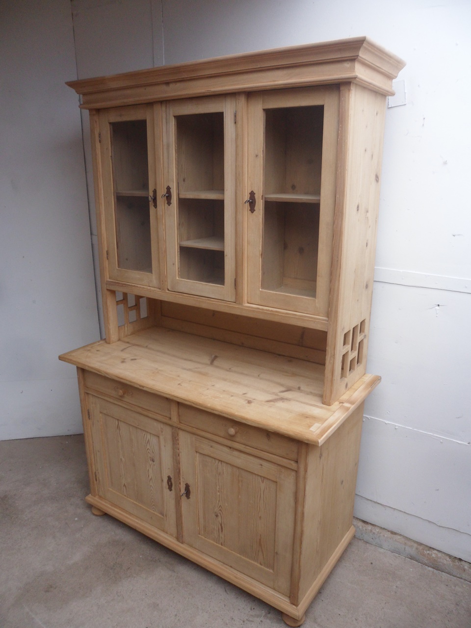 A Really Pretty Large 3 Door Pine Glazed Threatwork Kitchen Dresser