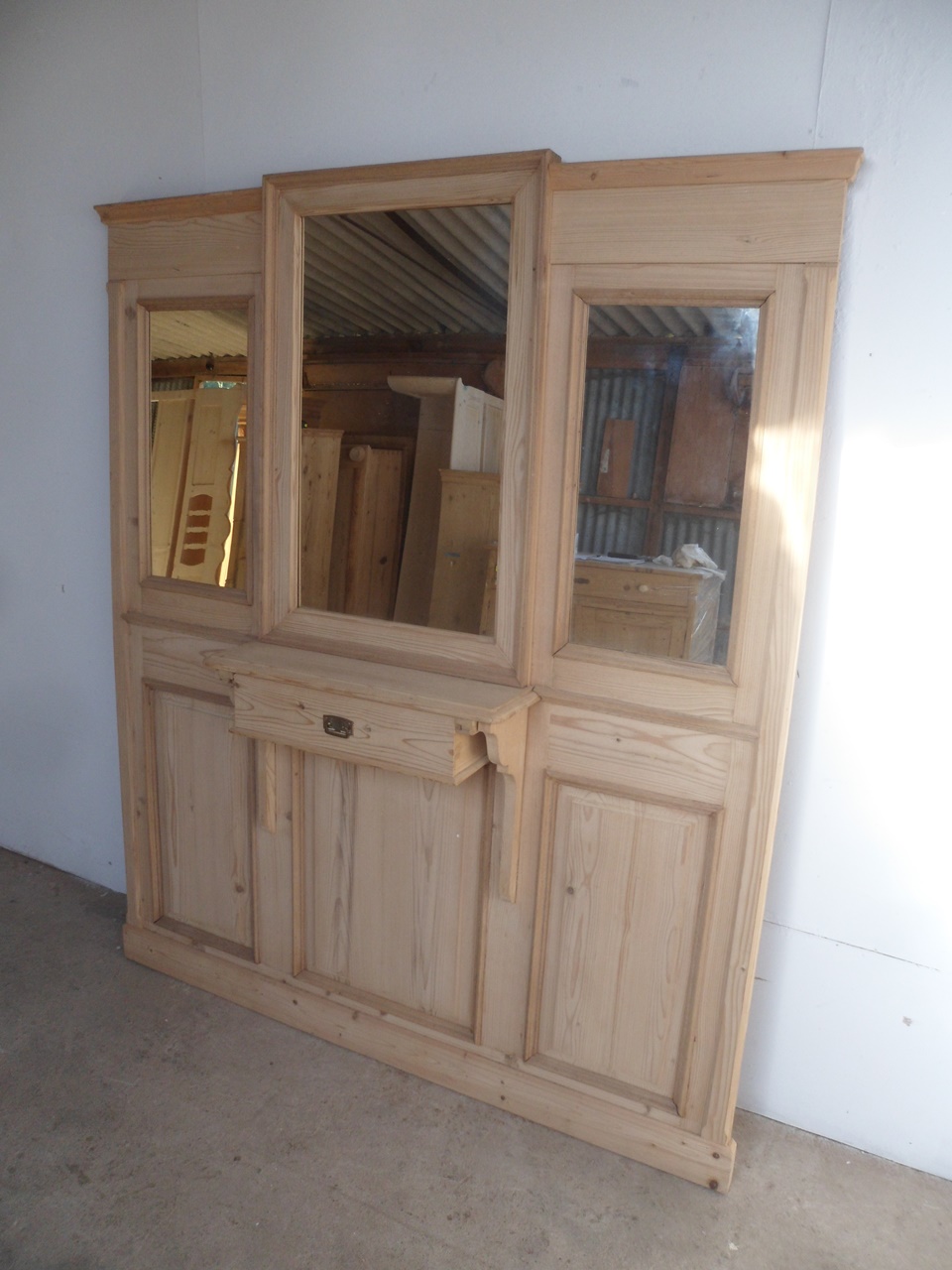 A Really Pretty Large Panelled Mirrored Hallstand To Paint or Wax