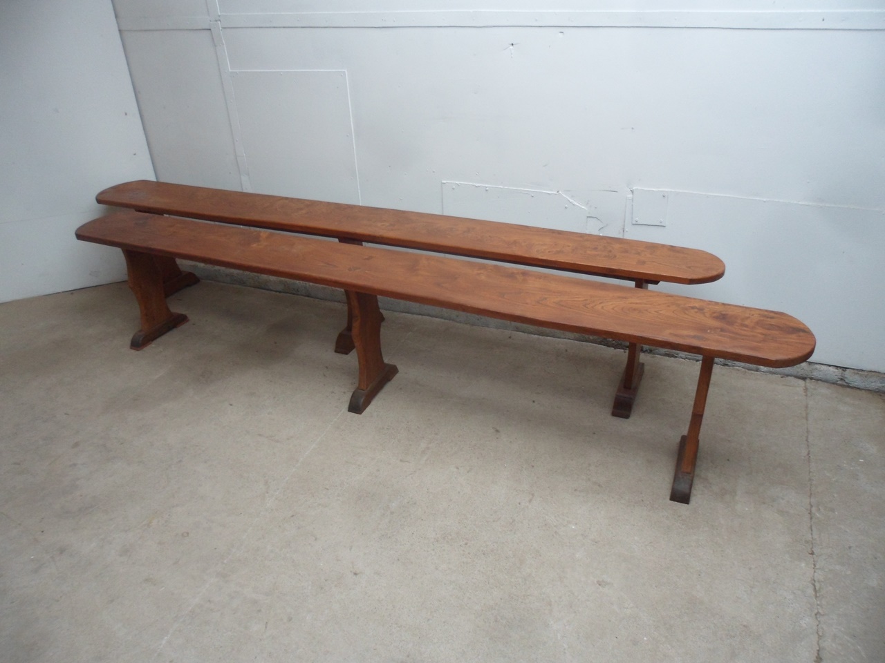 A Really Rare Pair of Victorian French Elm 6 Seater Table Benches
