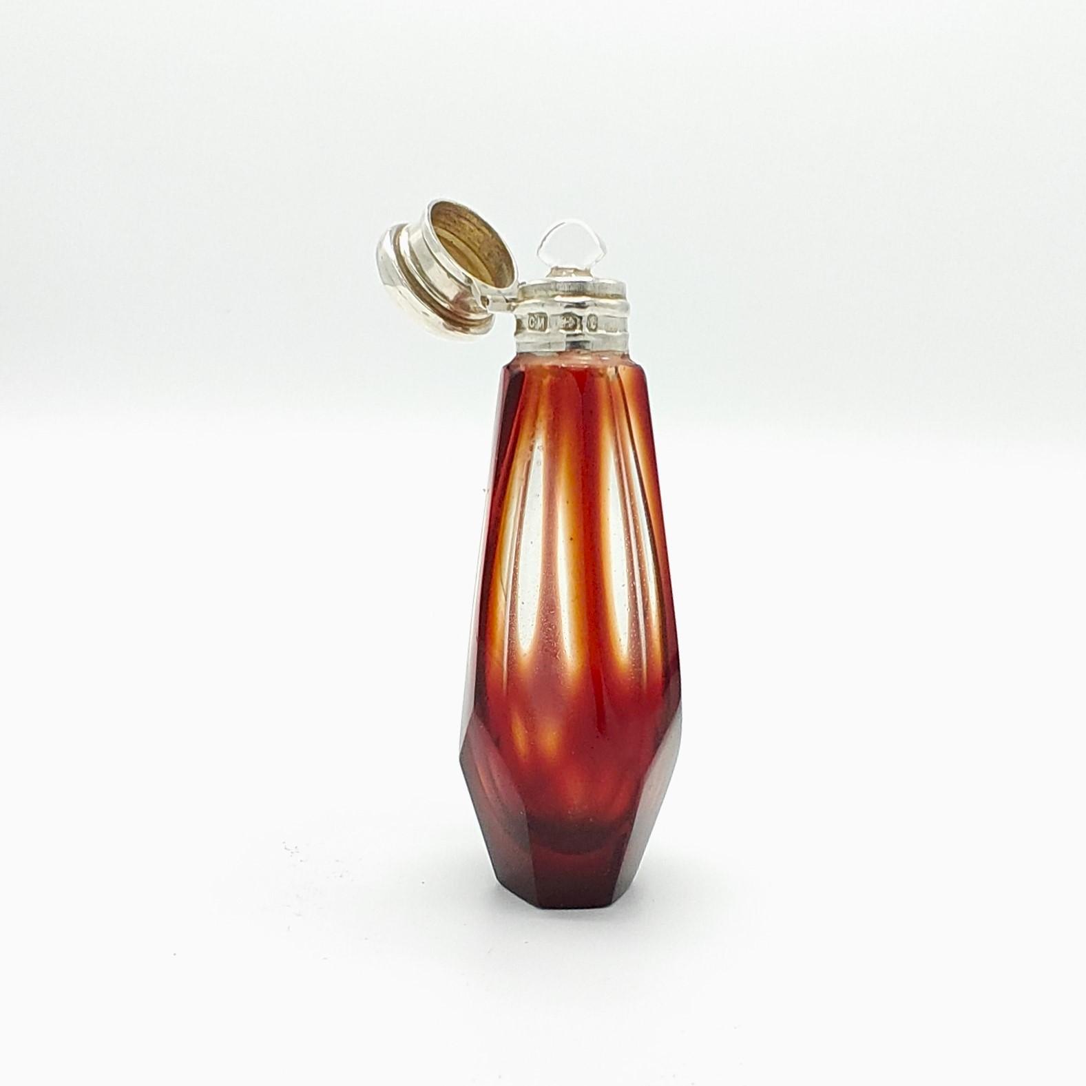 A Red Scent Bottle with Sterling Silver Mount by Charles May, Birmingham 1893