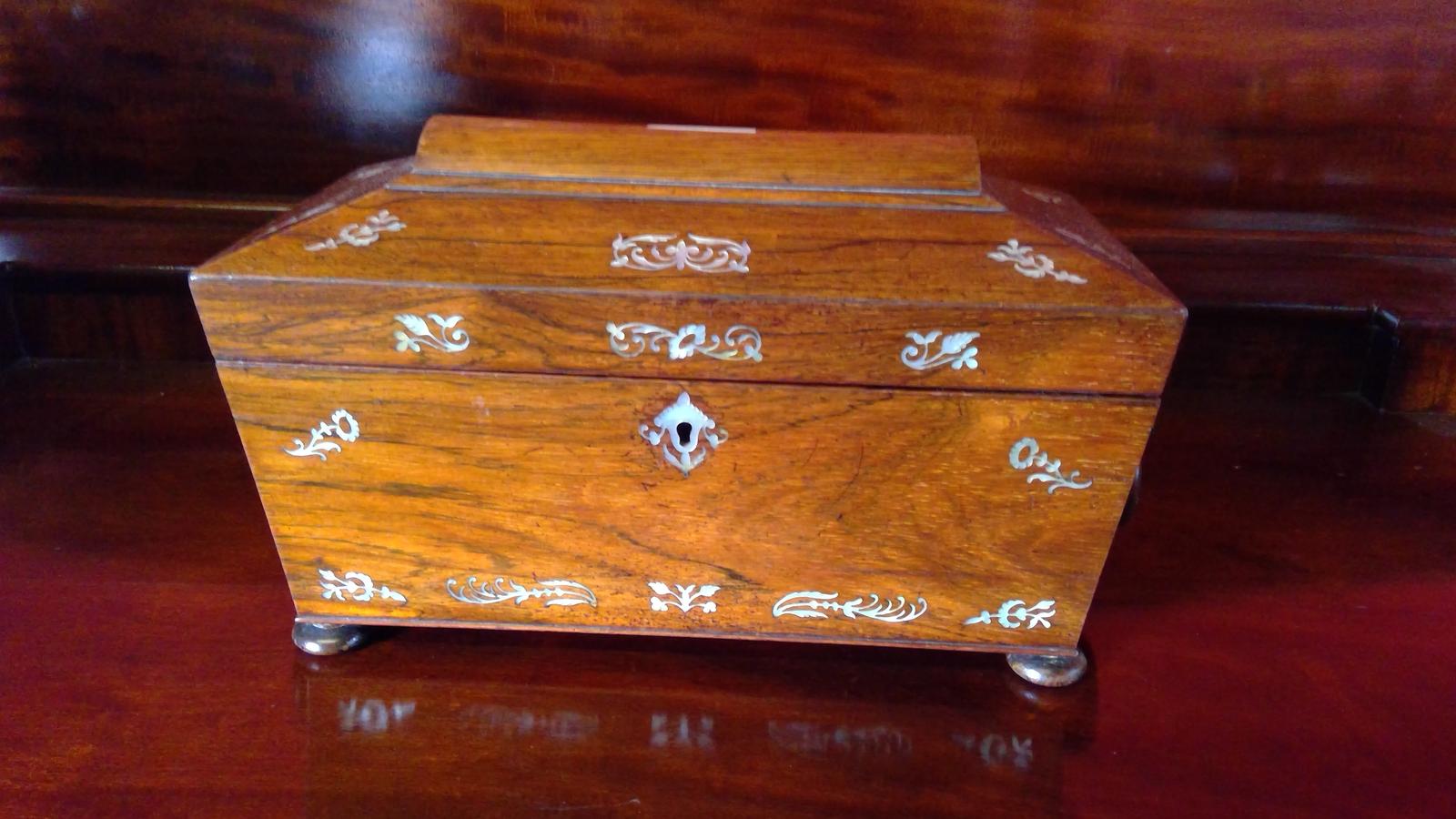 A Regency Rosewood Mixing Tea Caddy Inlaid with Mother of Pearl