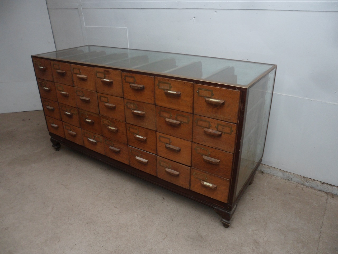 A Rolls Royce Brass Bound Victorian 28 Drawer Golden Oak Shop Counter