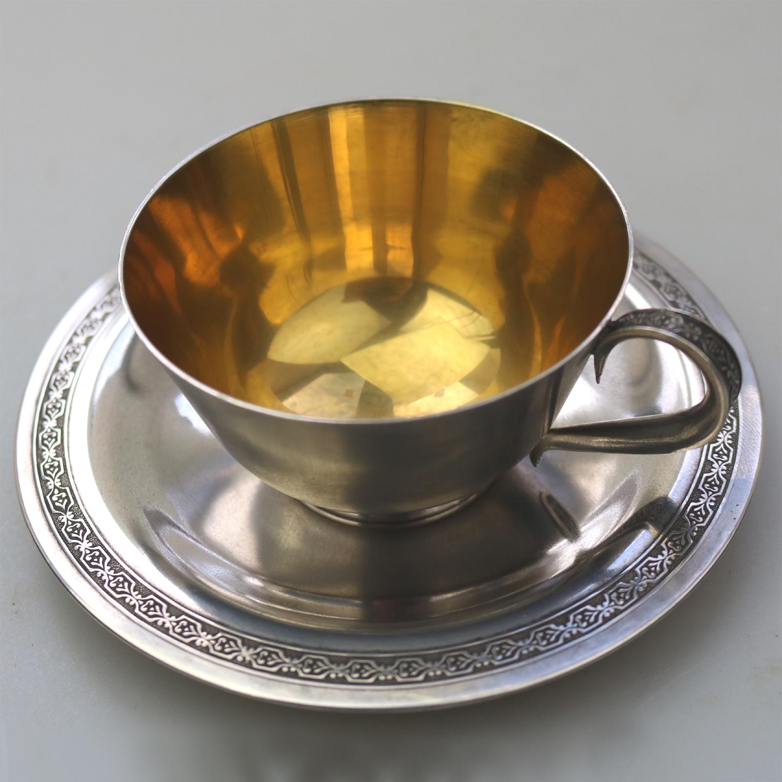 A Russian 875 Solid Silver Tea Cup & Saucer Soviet / Cold War Era