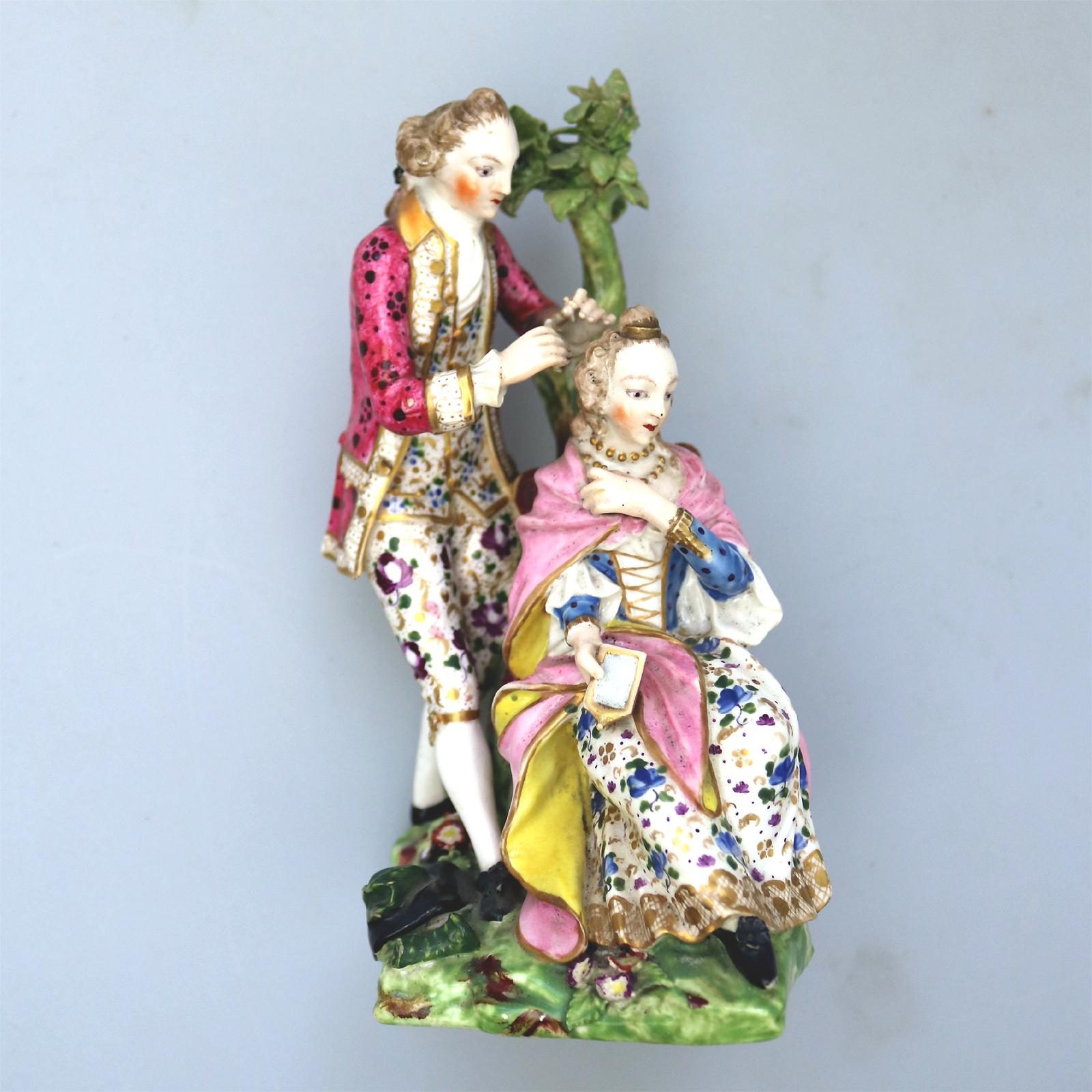 A Scarce Antique Derby Porcelain Figurine of a Hairdresser with Client C.1810