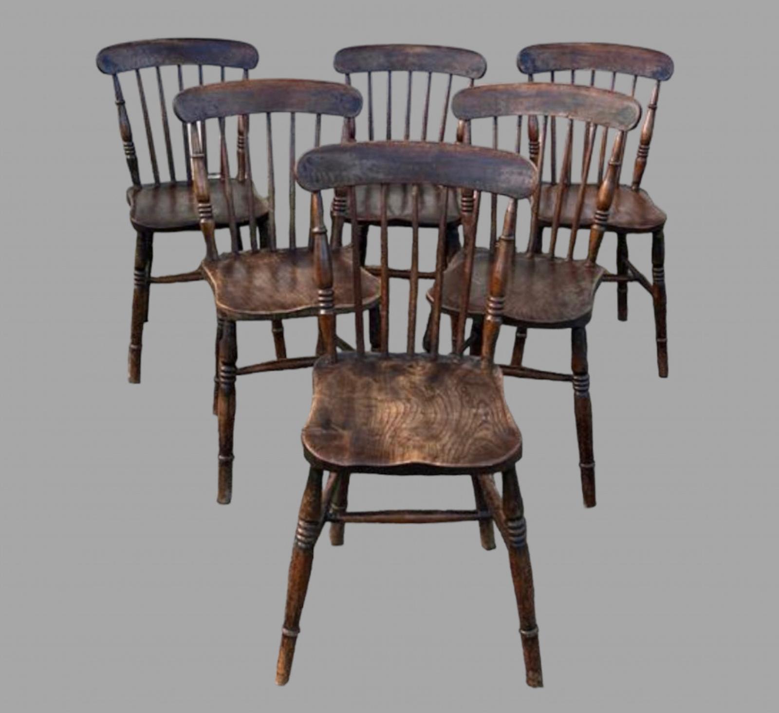 A Set of 19th Elm Seated Stickback Country Dining Chairs