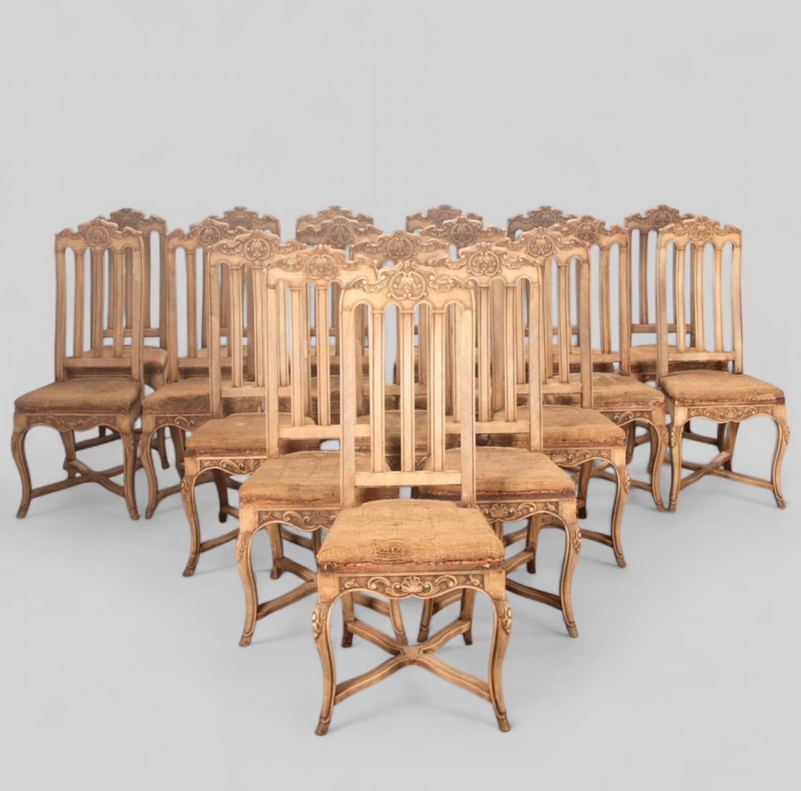 A Set of Eighteen French Bleached Walnut and Beech Chairs