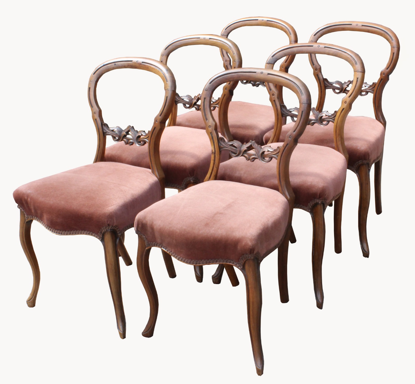 A Set of Six Victorian Walnut Balloon Back Dining Chairs