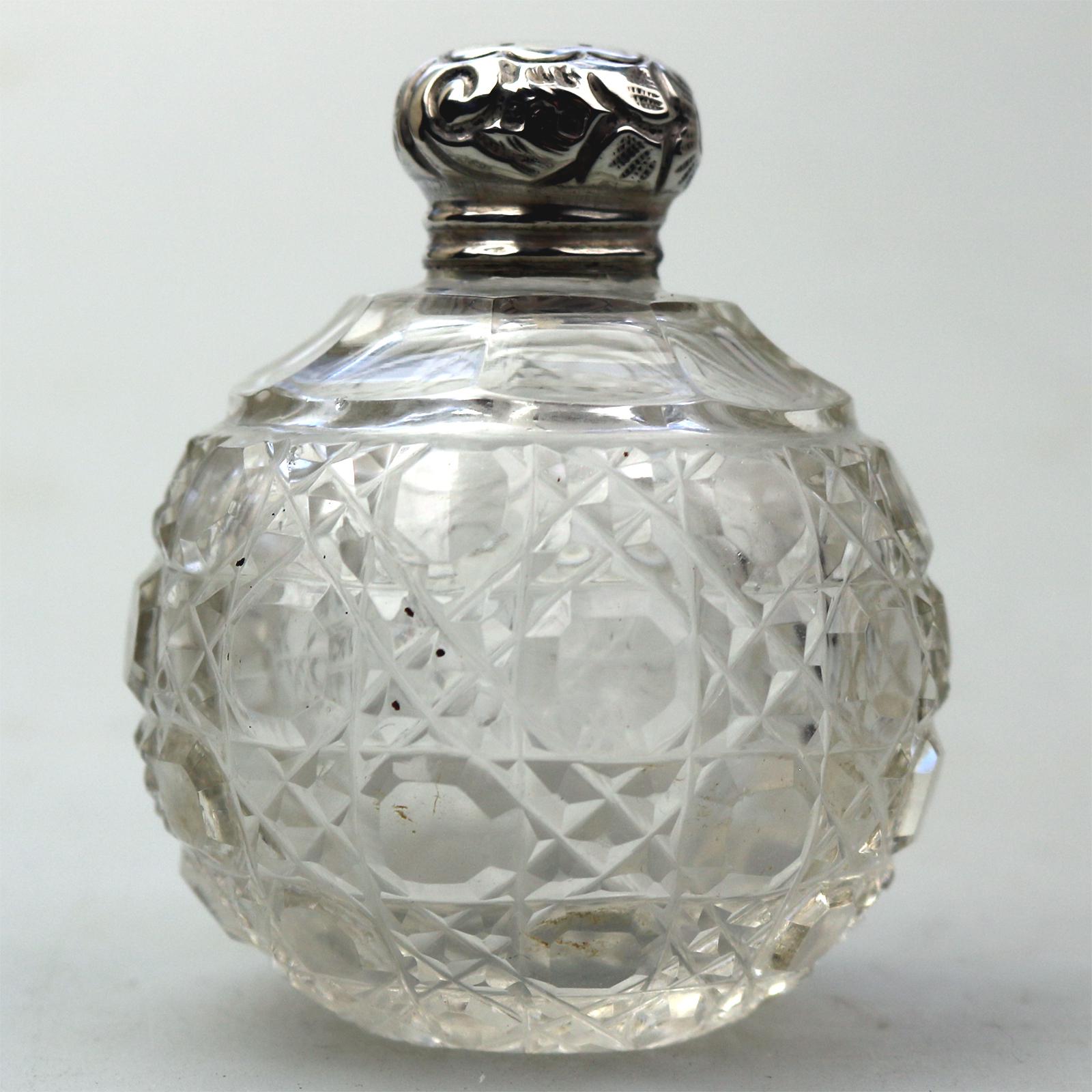 A Small Antique Solid Silver & Cut Glass Globular Scent Bottle Birmingham 1907