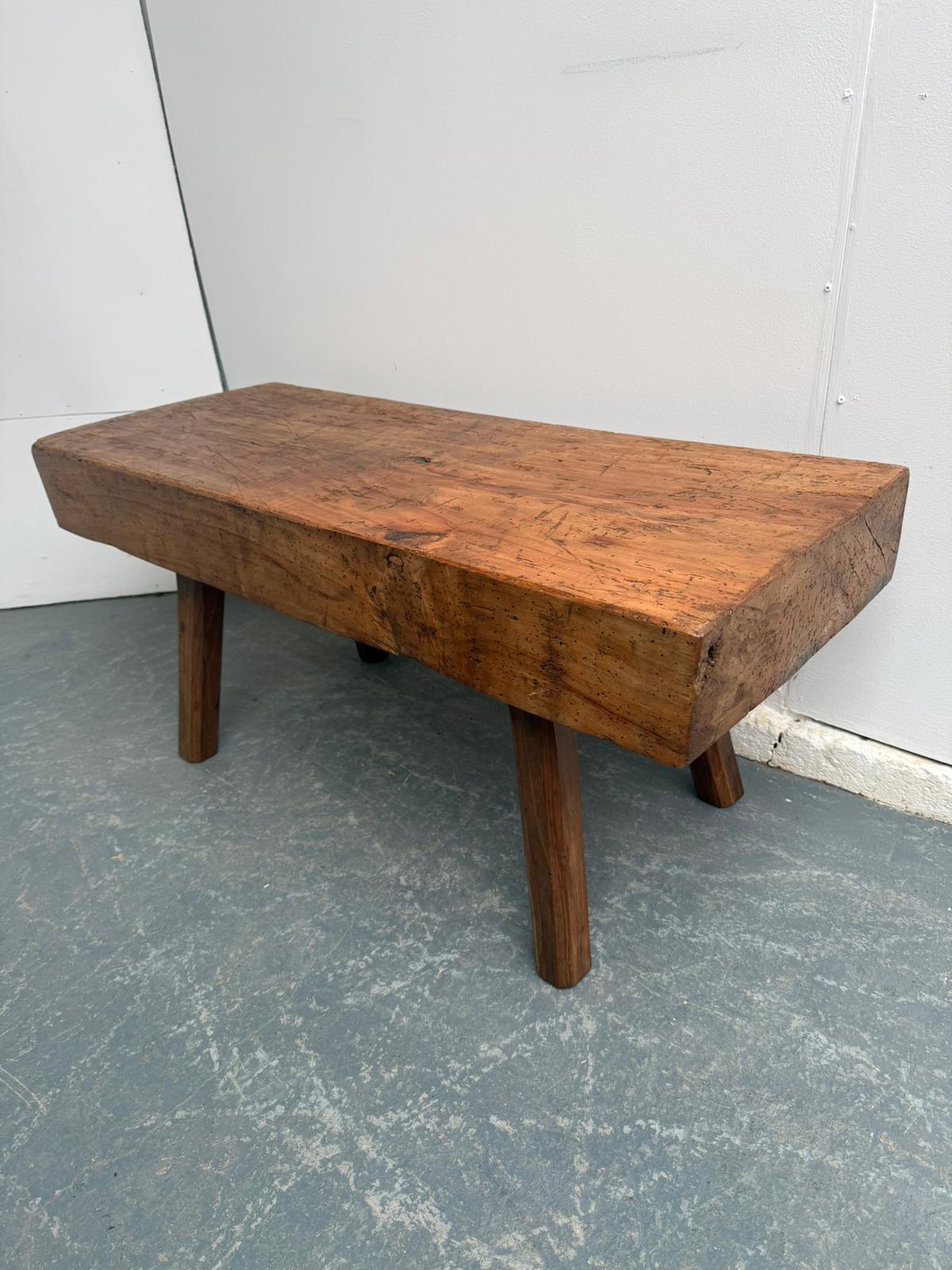 A Small Chunky Hungarian Antique Oak/hardwood Pig Bench/coffee Table 110cm