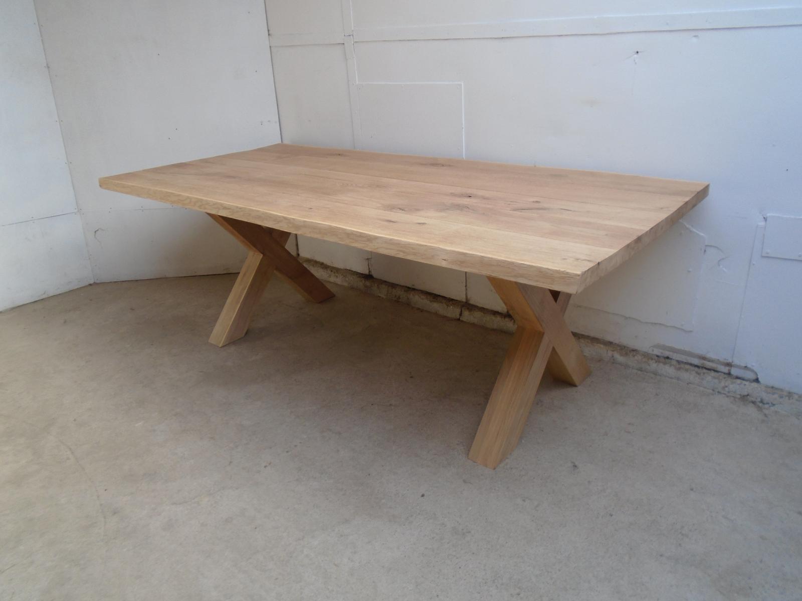 A Solid Oak 220cm Cross 8 Seater Outdoor Dining Table to Oil / Wax / Limewash
