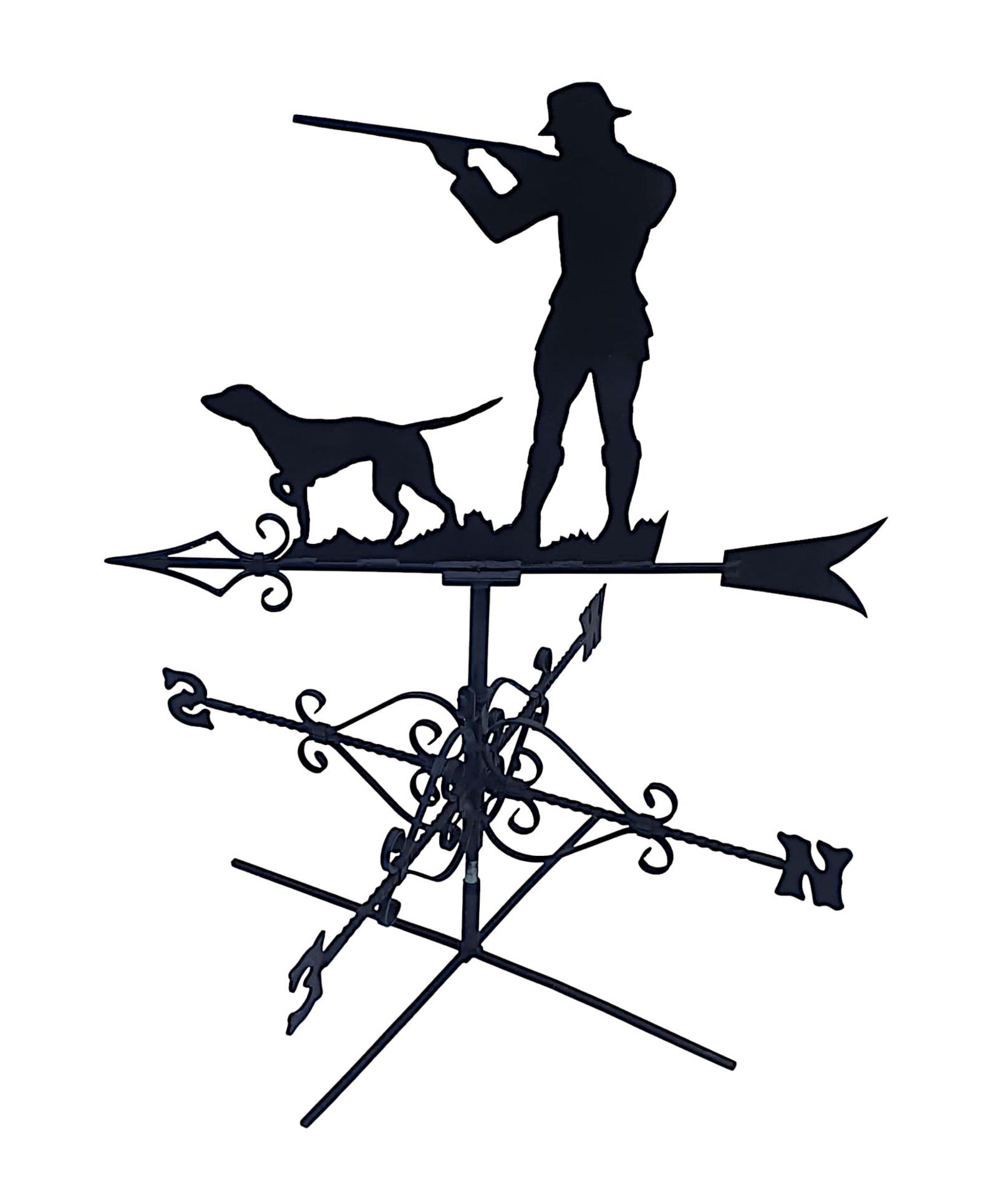 A Stunning Mid 20th Century Forge Made Weather Vane of a Gunman and Dog