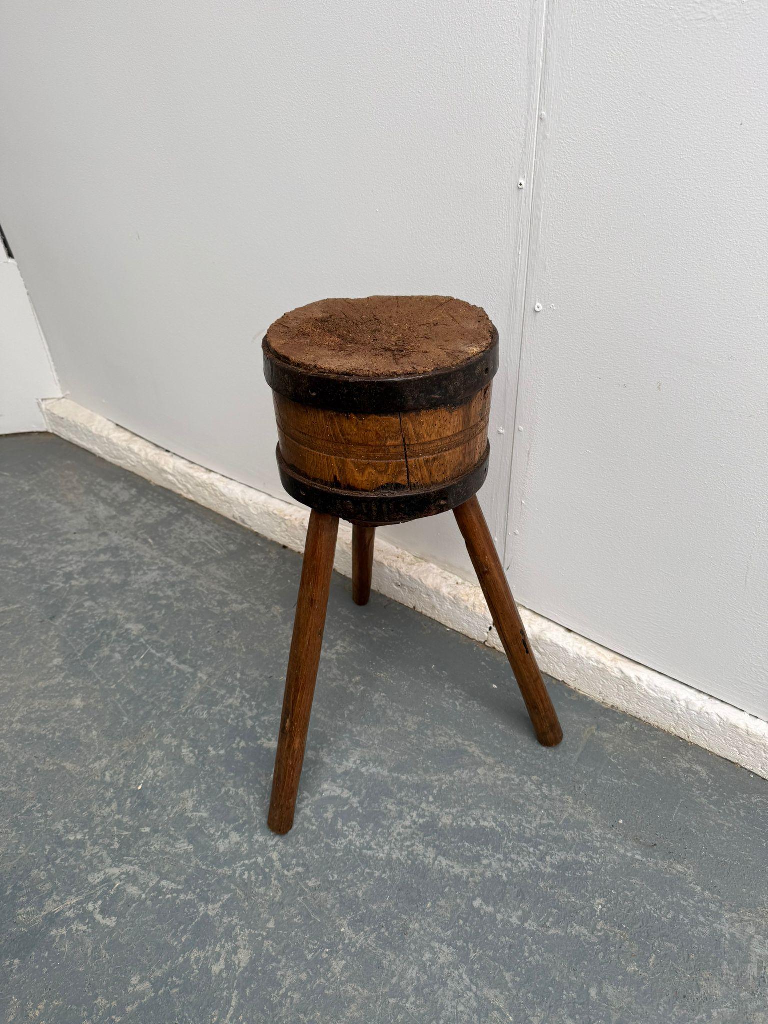 A Stunning Original Hungarian Circular Tripod Hardwood Butchers Block