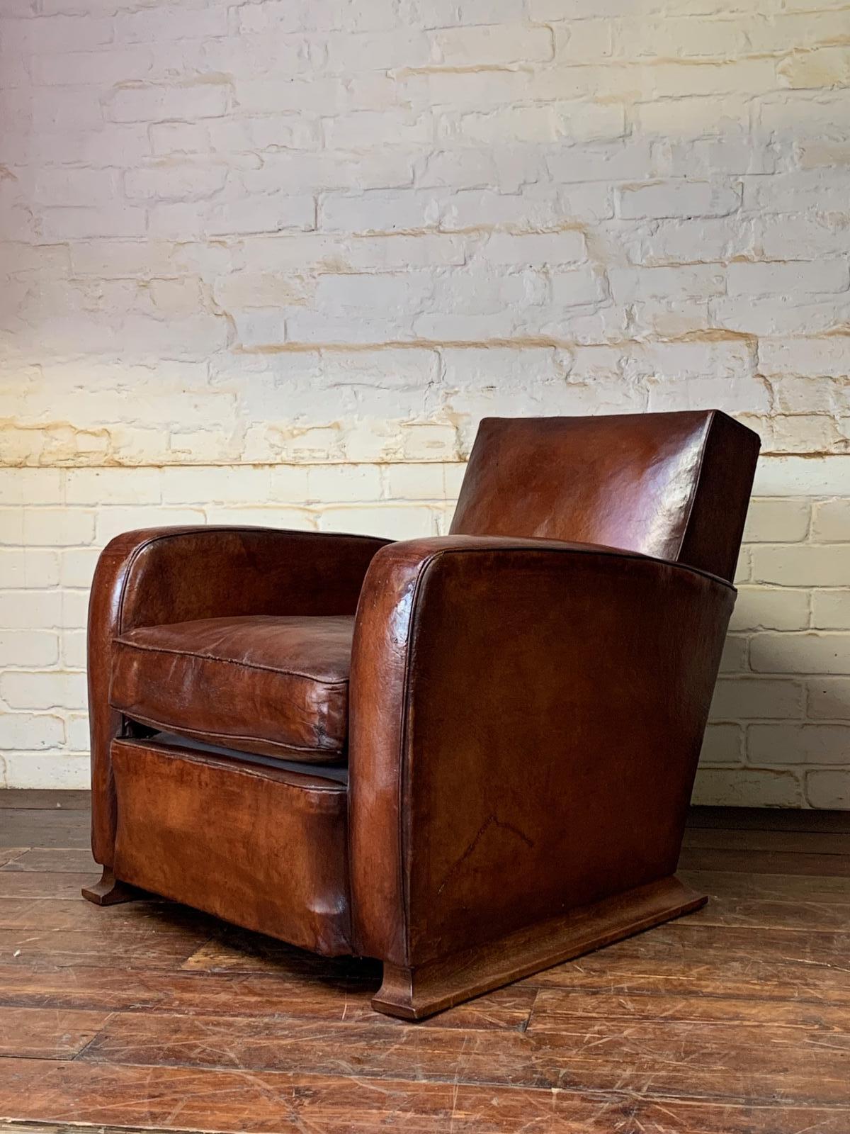 A Stylish & Rare  French Leather Club Chair, Art Deco Model, Circa 1930s (1 of 9)