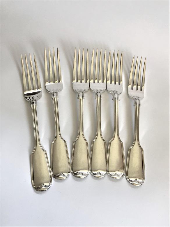 A substantial set of 6 Victorian silver fiddle & thread table forks (1 of 5)