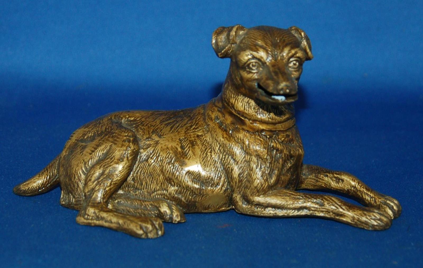 A Super Antique Terrier Dog Card or Letter Holder, Gilt Cast Metal, 19th Century