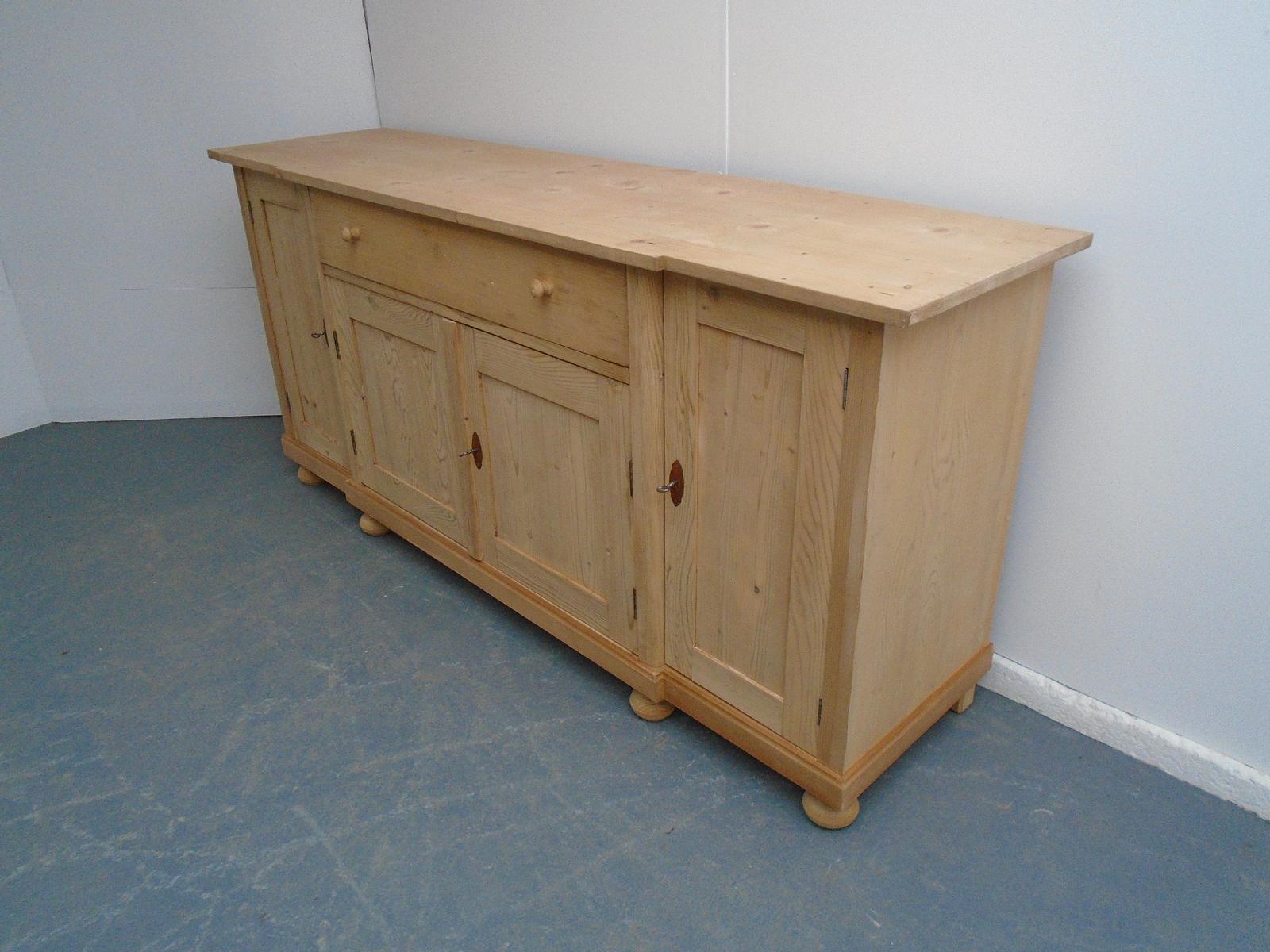 A Superb Breakfront Antique / Old Pine Dresser Base / TV Stand to Wax / Paint