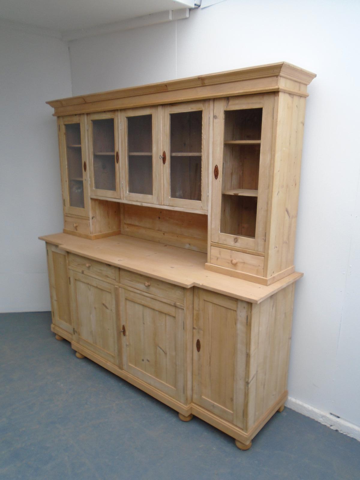 A Superb Breakfront Antique / Old Pine Kitchen Dresser to Wax / Paint