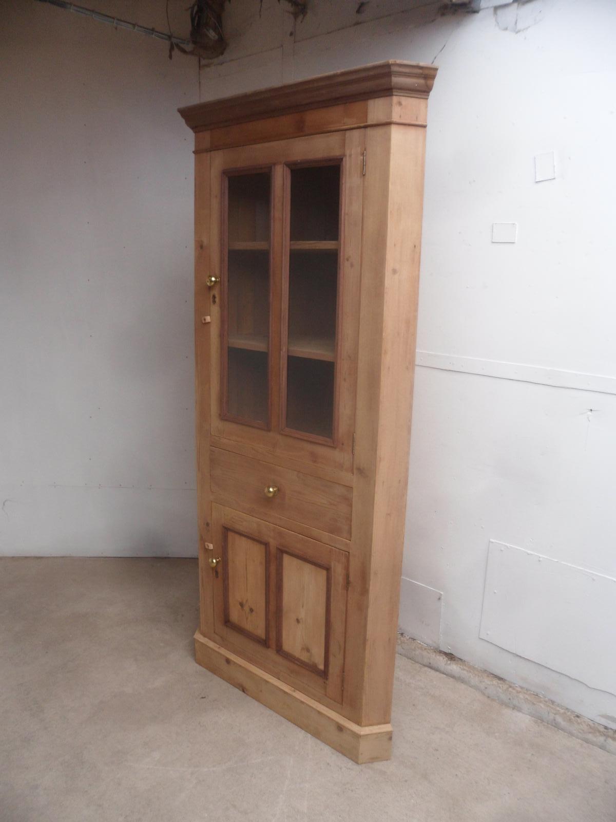 A Superb Early Victorian Antique/old Pine 1 Piece Large Glazed Corner Cabinet