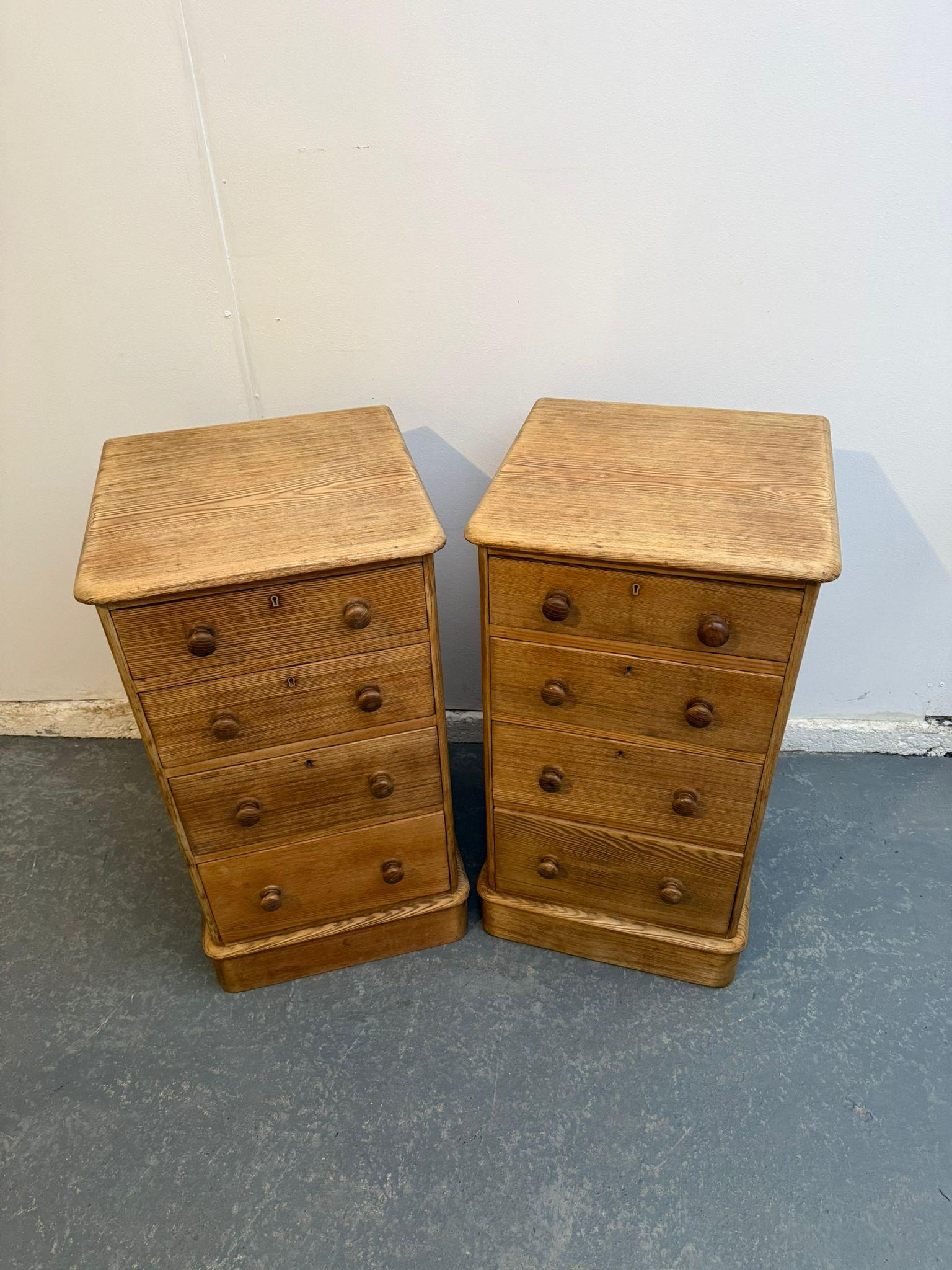 A Superb Pair of Waxed Victorian Antique Pine Ash 4 Drawer Bedside Cabinets