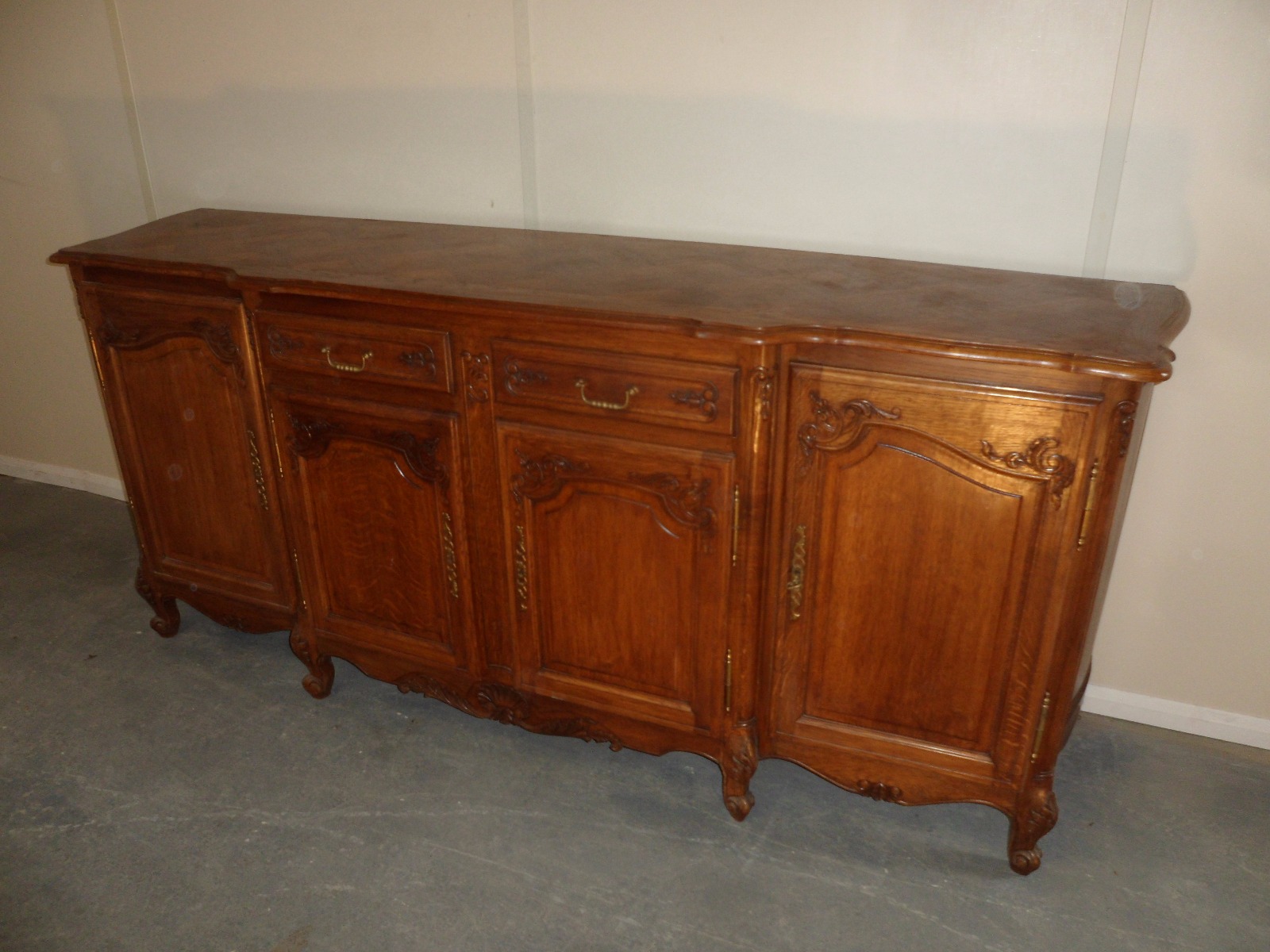 A Superb Parque Topped Large 4 Door Golden Oak French Sideboard