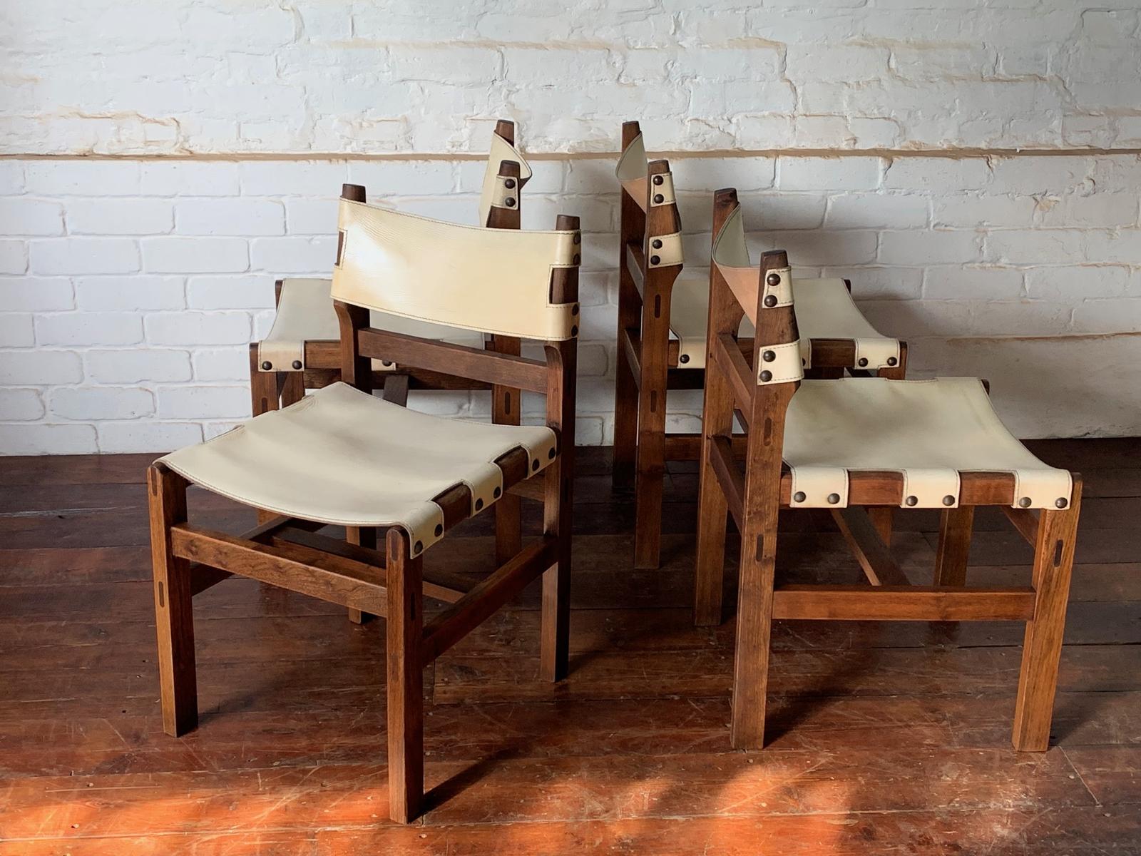 A Superb Set of Four Leather & Elm Safari Dining Chairs Circa 1970s by Maison Regain (1 of 15)