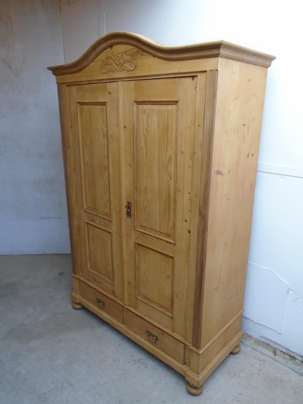 A Superb Waxed Art Nouveau 1 Piece Shelved Antique / Old Pine Wardrobe C1910