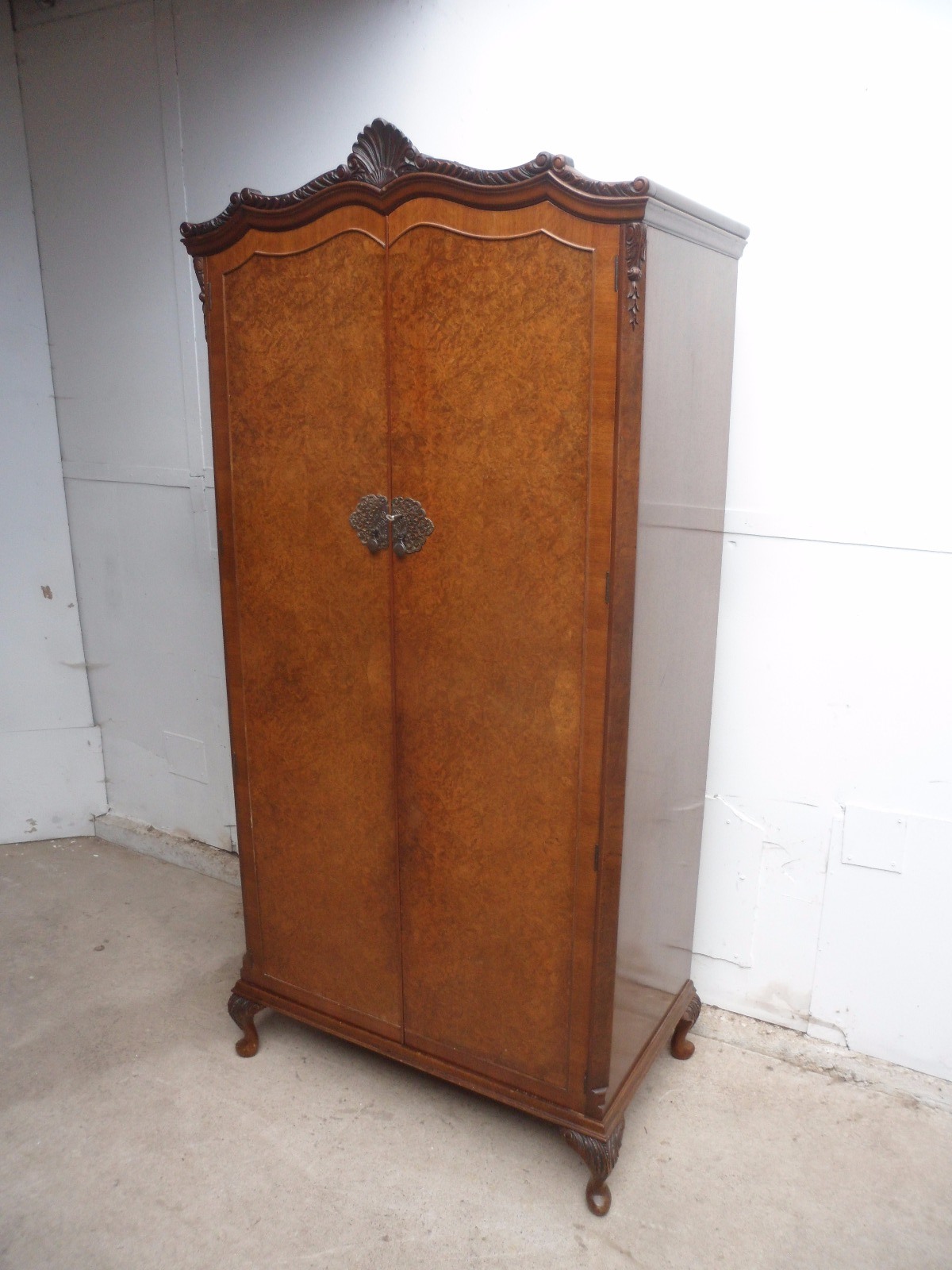 A Superbly Fitted Burr Walnut 1950s Gentleman's 1 Piece Wardrobe