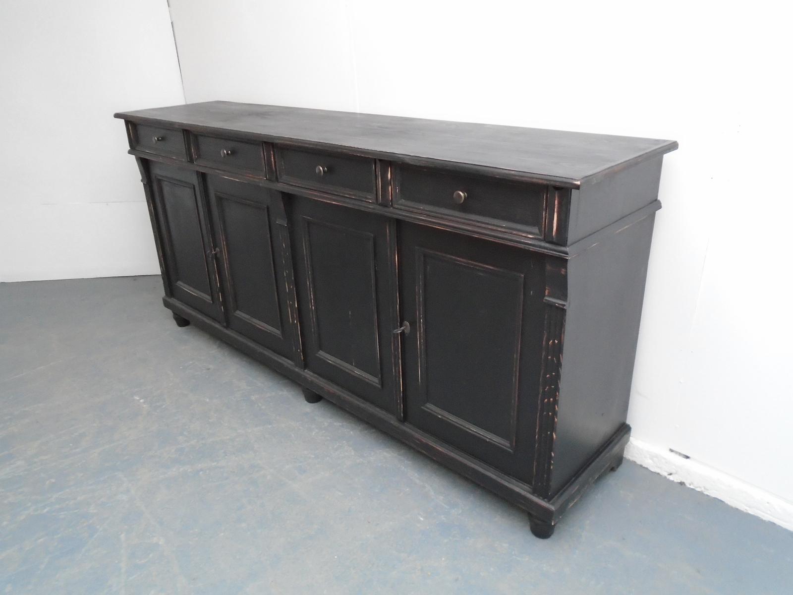 A Superbly Painted Black Pine 2 Metre 4 Door Dresser Base / TV Stand