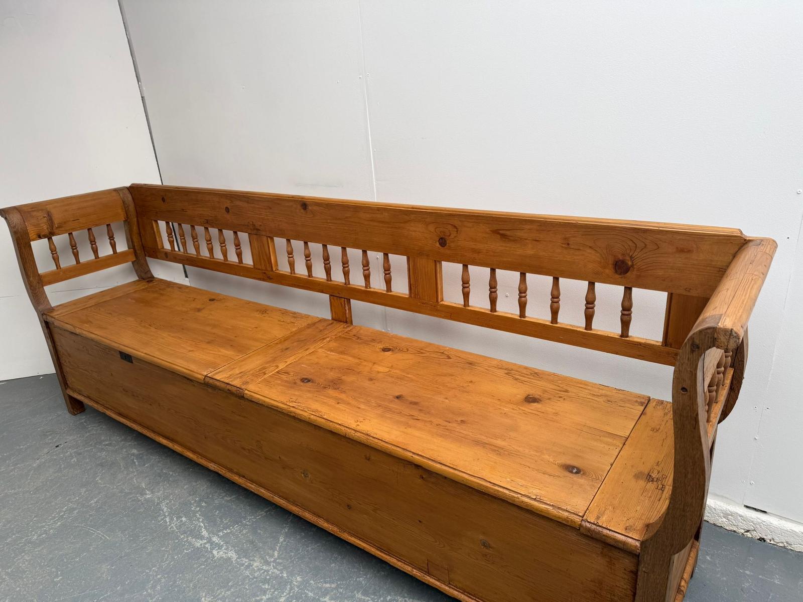 A Superbly Waxed Original Victorian Pine Hungarian 4 Seater Box Settle / Bench