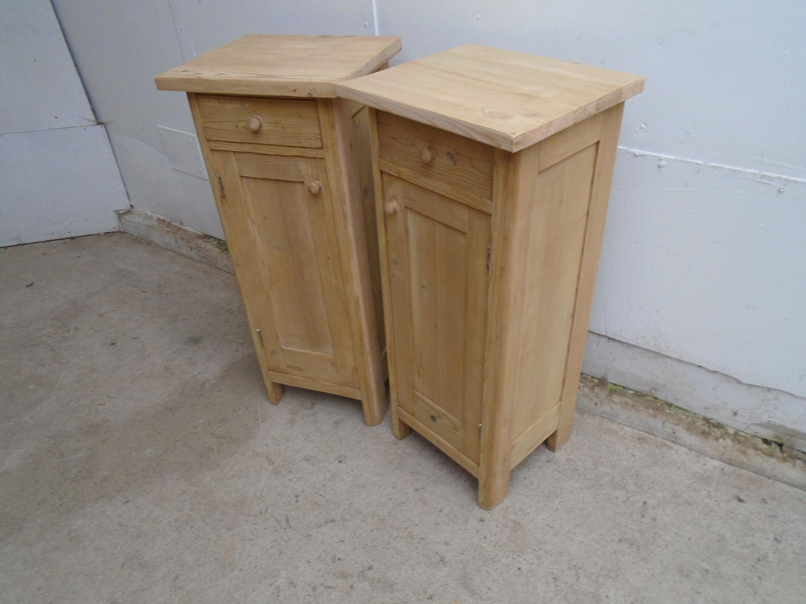 A Tall Pair of Panelled Antique Victorian Pine Bedside Cabinets to Wax / Paint