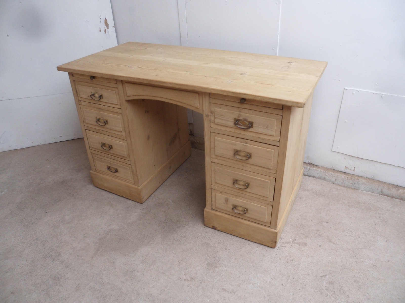 A Tidy 8 Drawer 2 Slides Antique/Old Pine Office Desk To Paint/Wax