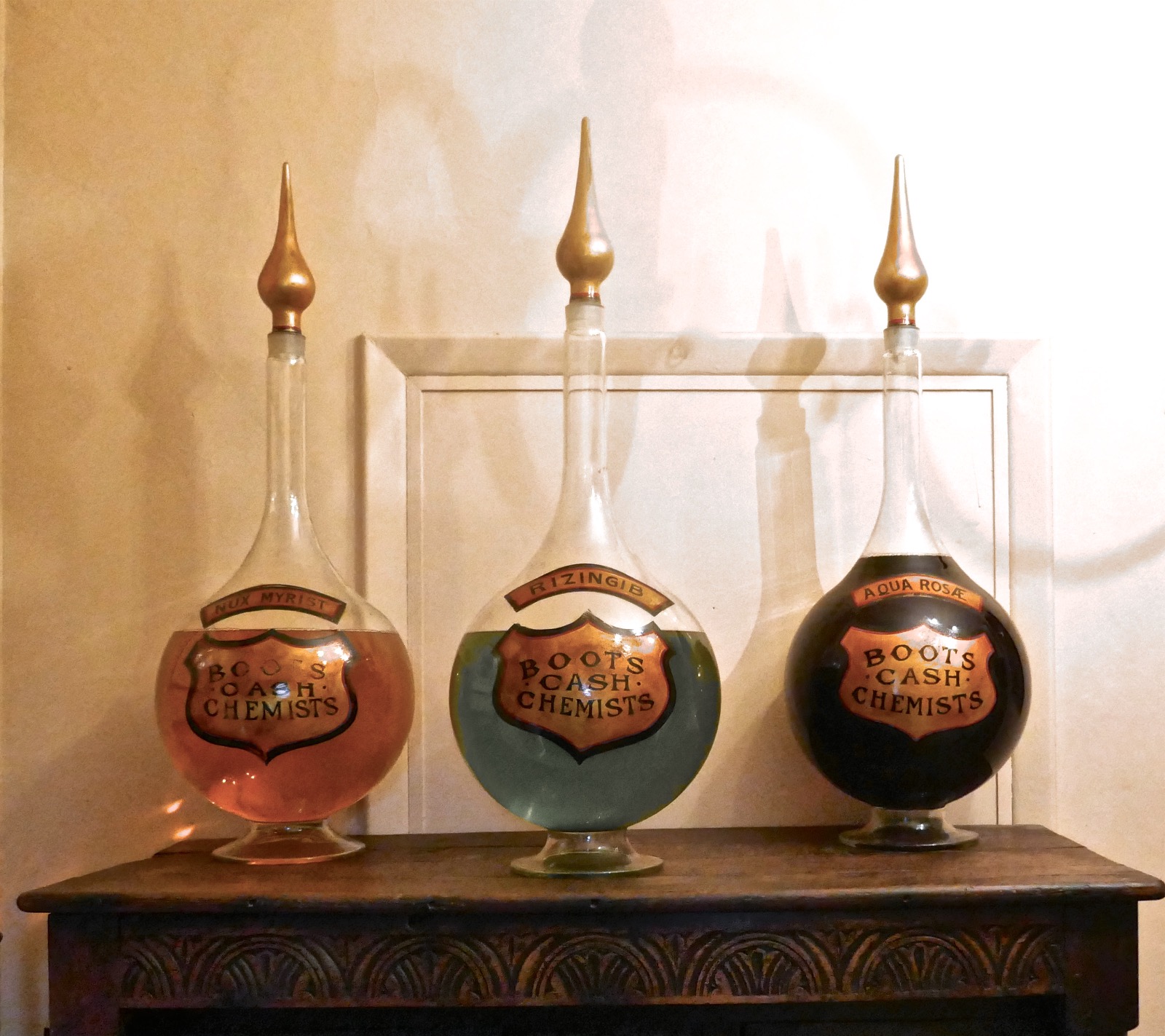 A Trio of Very Large Antique Apothecary or Old Chemist Jars Shop Display