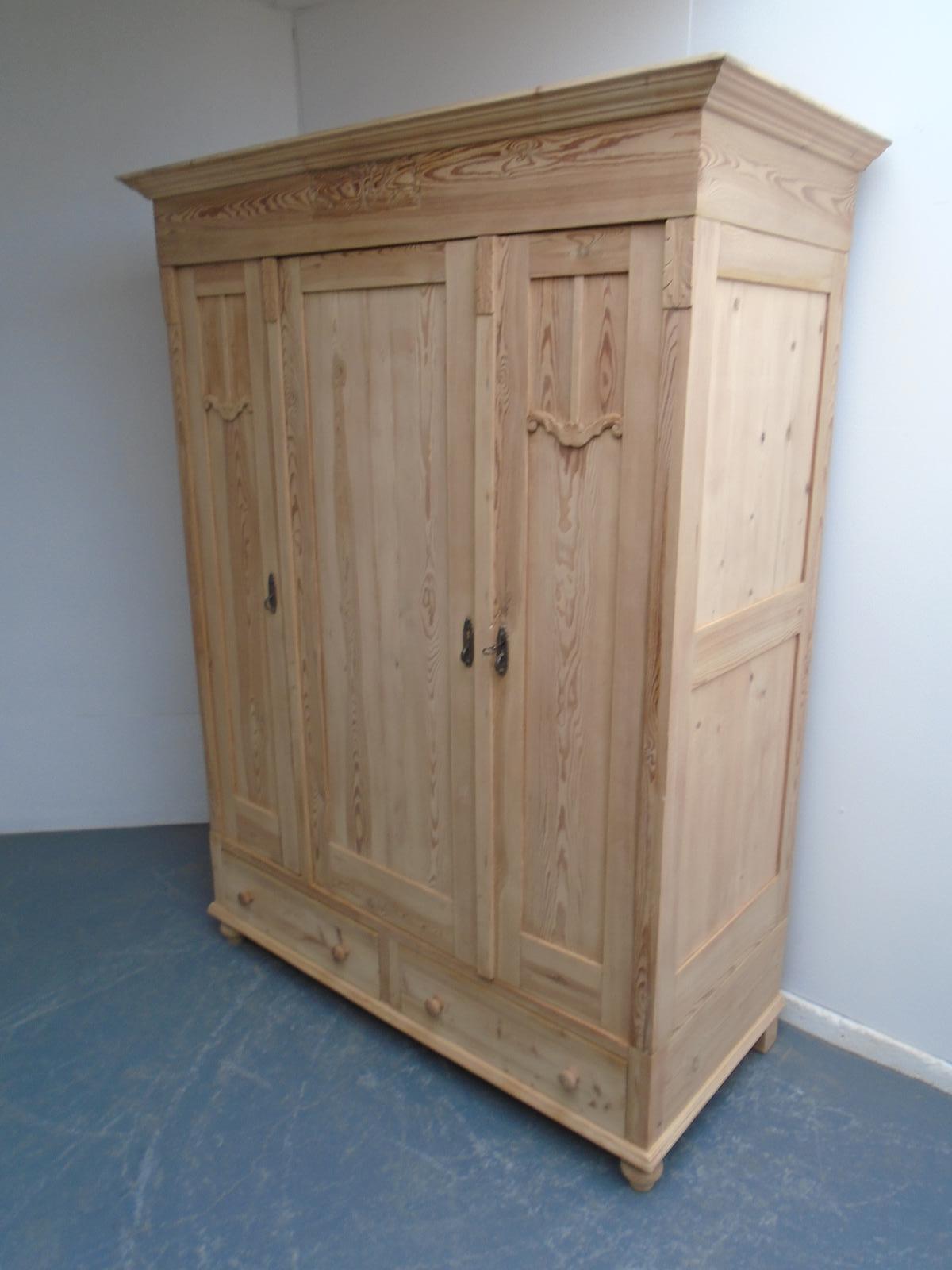 A Triple Art Nouveau Antique Pine Large Knockdown Wardrobe to Wax/paint