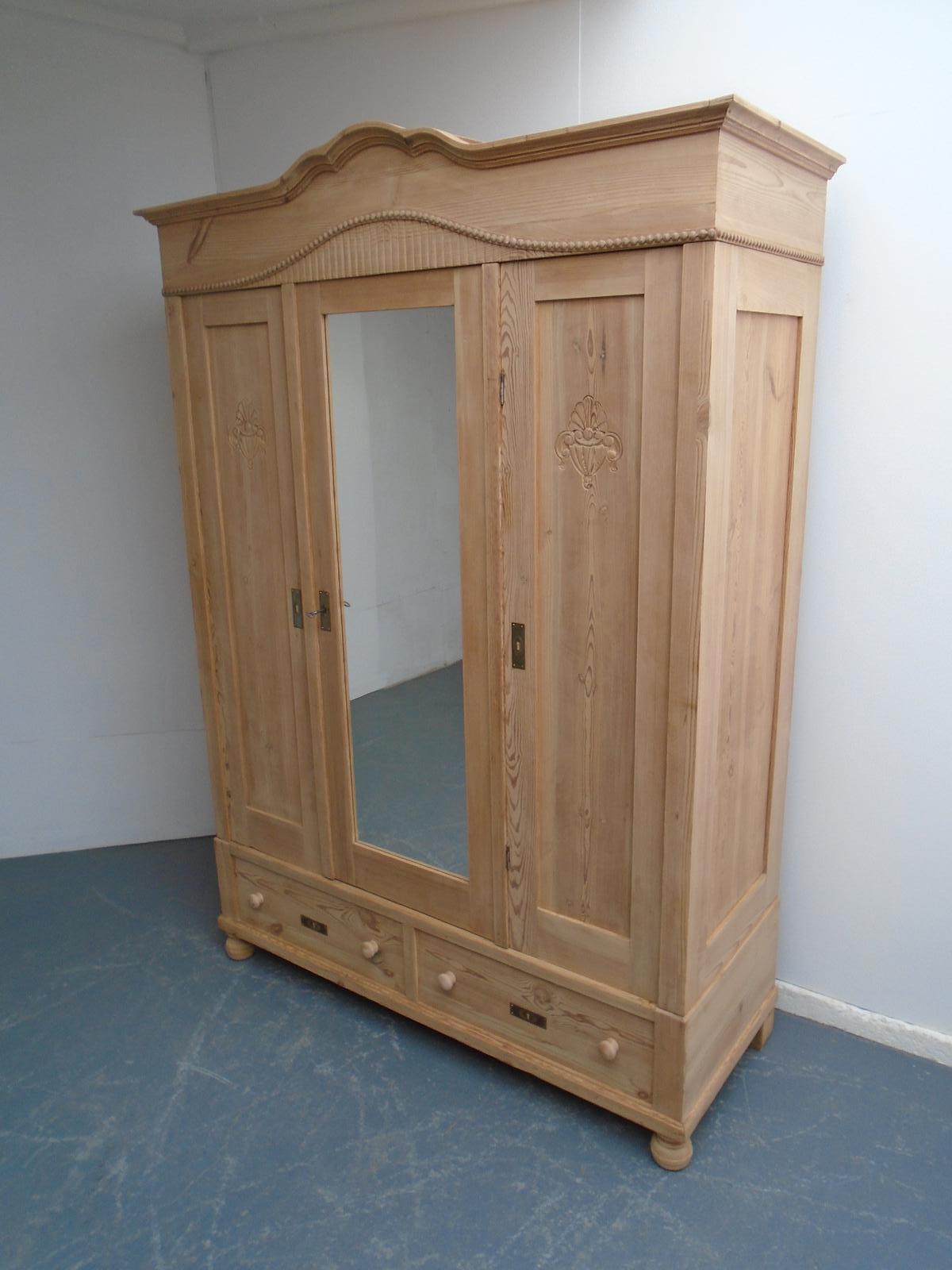 A Triple Mirrored Victorian Antique Pine Large Knockdown Wardrobe to Wax/paint