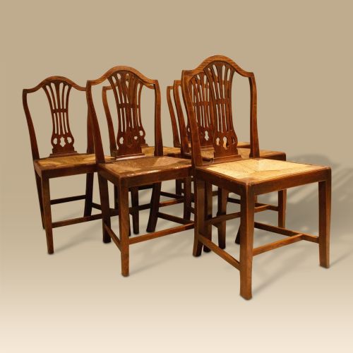 A True Set of Six Late 18th Century Elm Dining Chairs