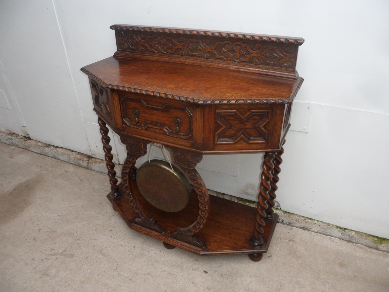A Unique 1920s Barley Twist Carved Golden Oak Gong Hall Table