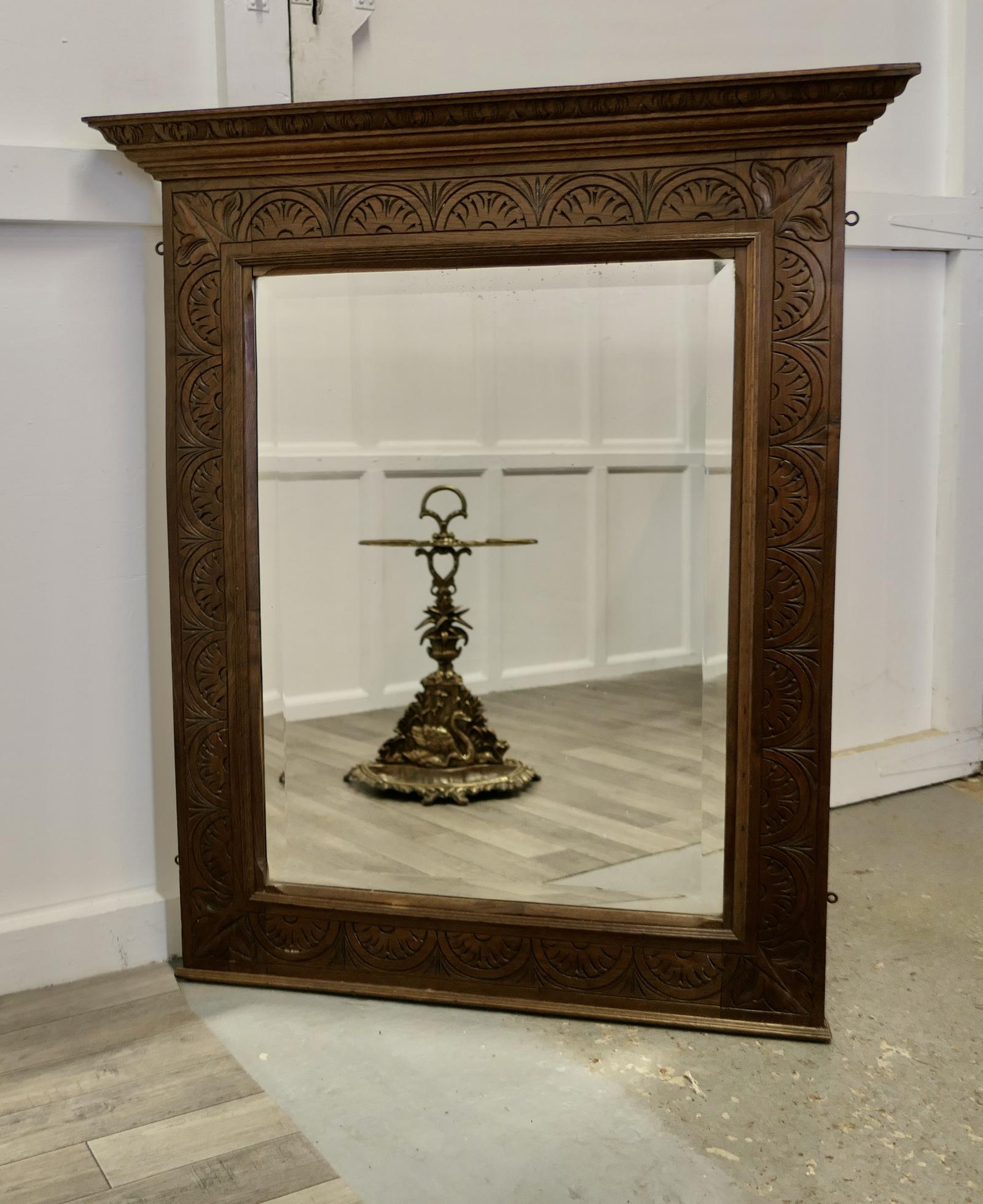 A Very Large Carved Oak Overmantel or Wall Mirror
