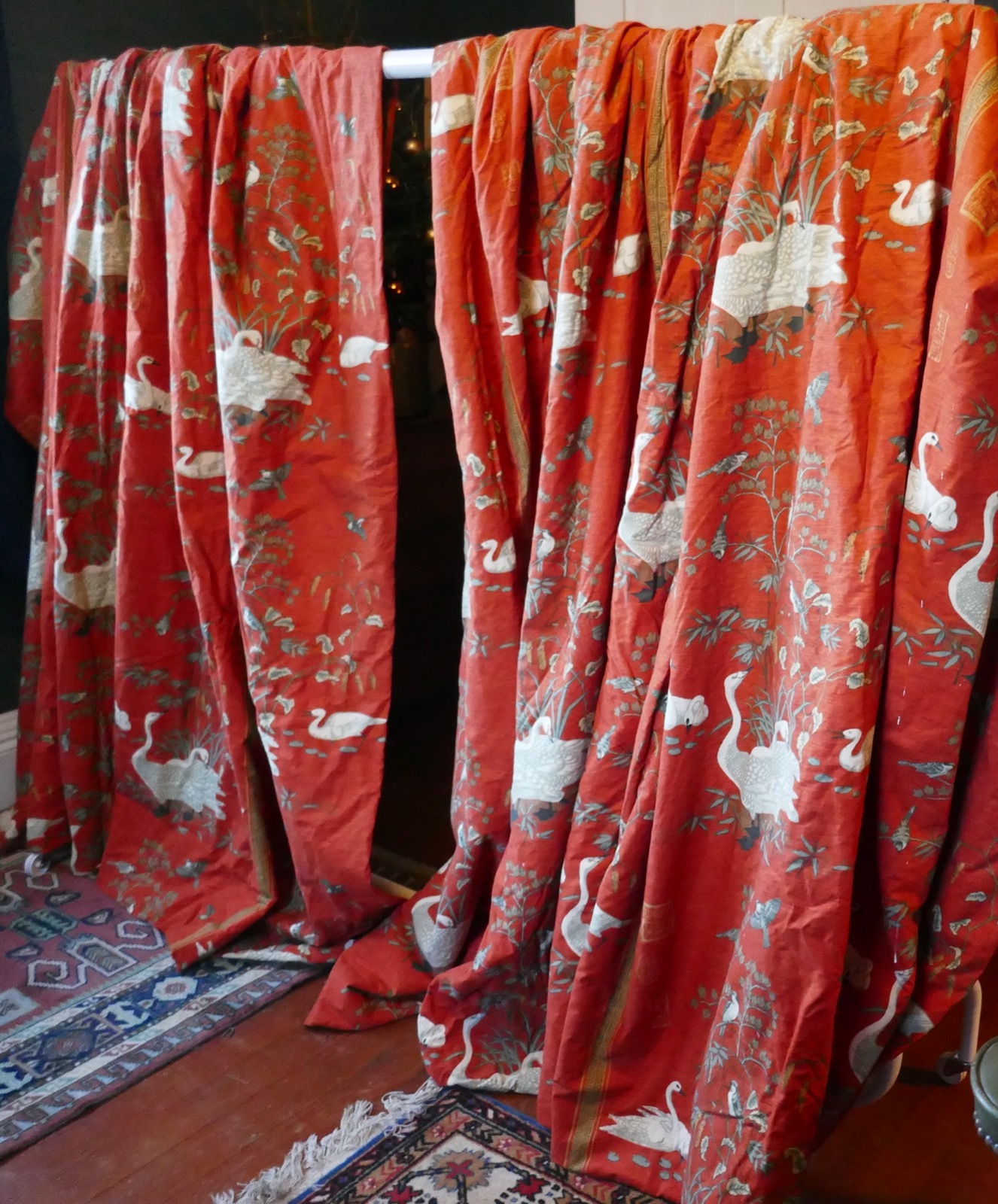A Very Large Pair of Lined Greeff Vintage Curtains “Aviary From the Emperors” Fabric