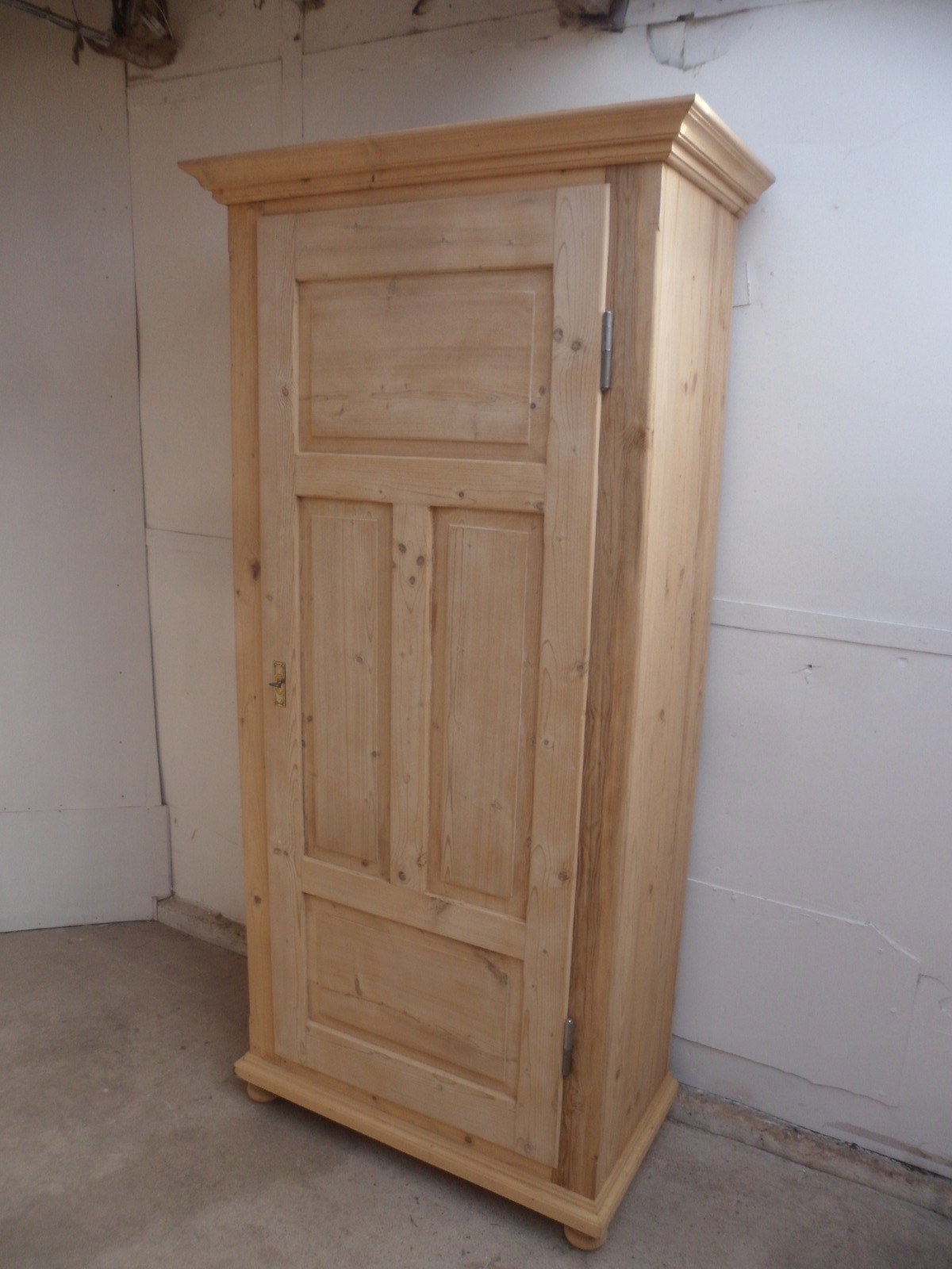 A Very Tall Antique/Old Pine 1 Door Pin Hinge Storage Cupboard To Wax/Paint