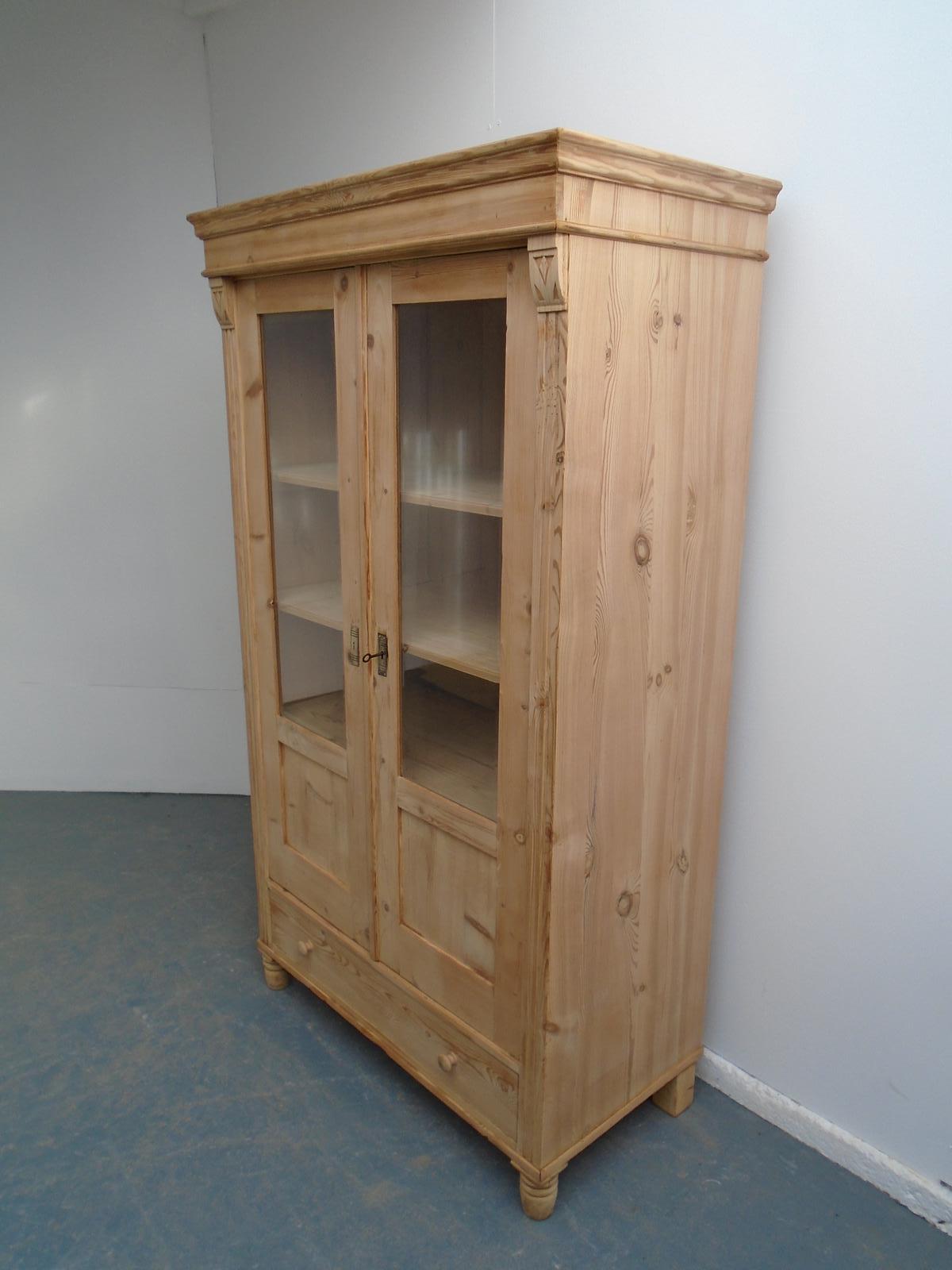A Victorian Antique / Old Pine 1 Piece Glazed Display Cabinet to Wax/paint
