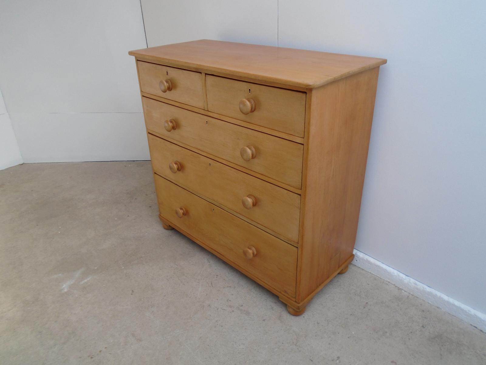 A Victorian Antique / Old Pine Waxed 5 Drawer Plank End Chest of Drawers