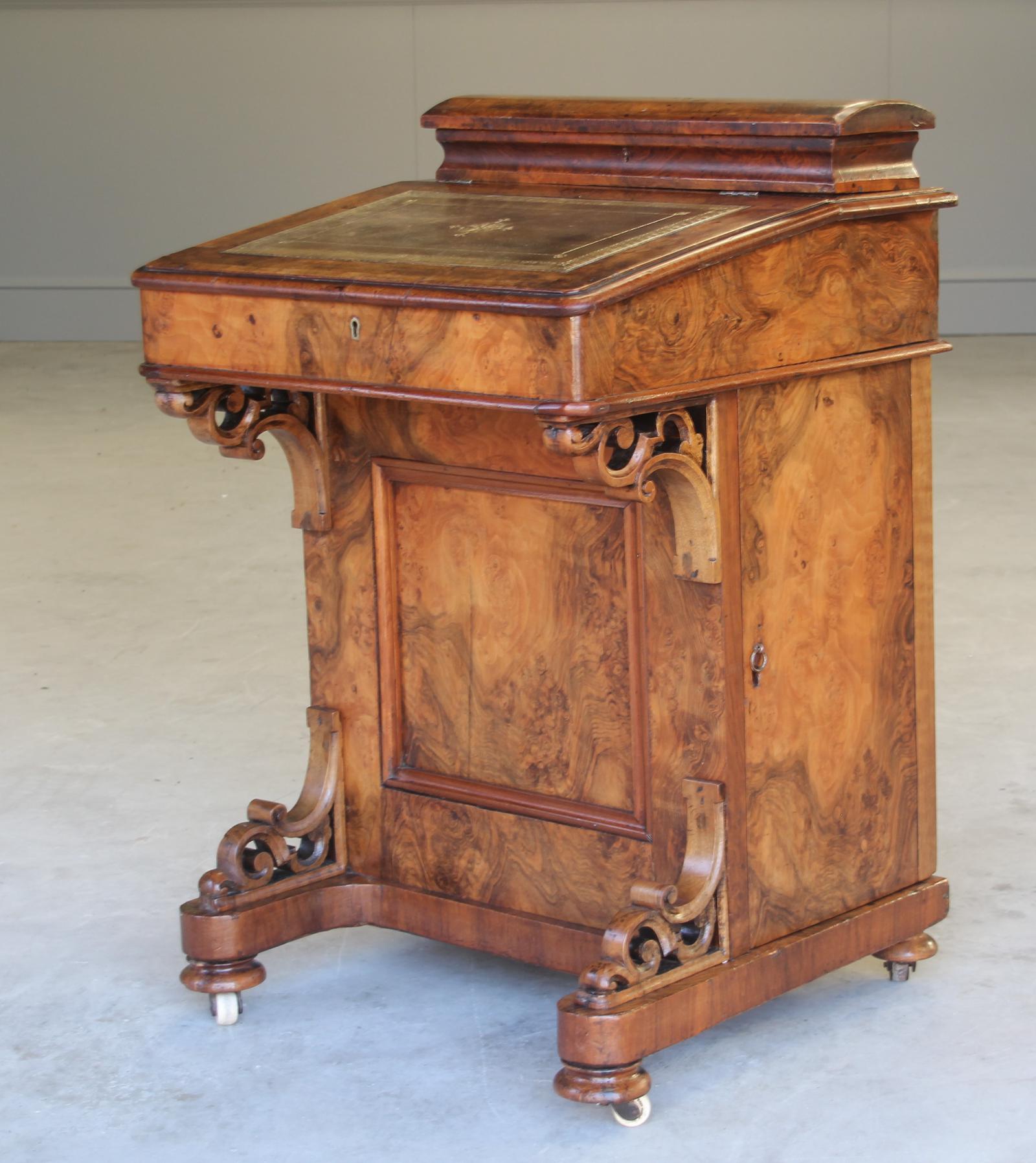 A Victorian Burr Walnut Davenport
