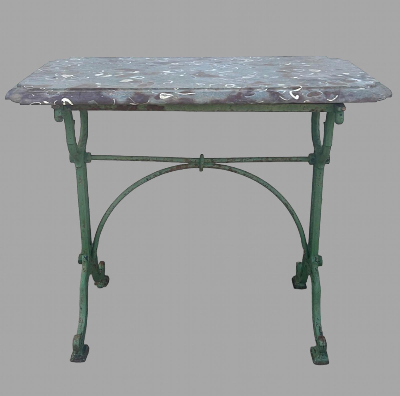 A Victorian Marble Topped Wrought Iron Based Table