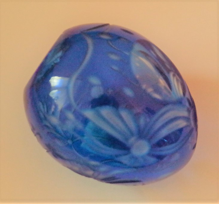 A Vintage Bristol Blue Miniature Etched Glass Ornament - Unusual Item