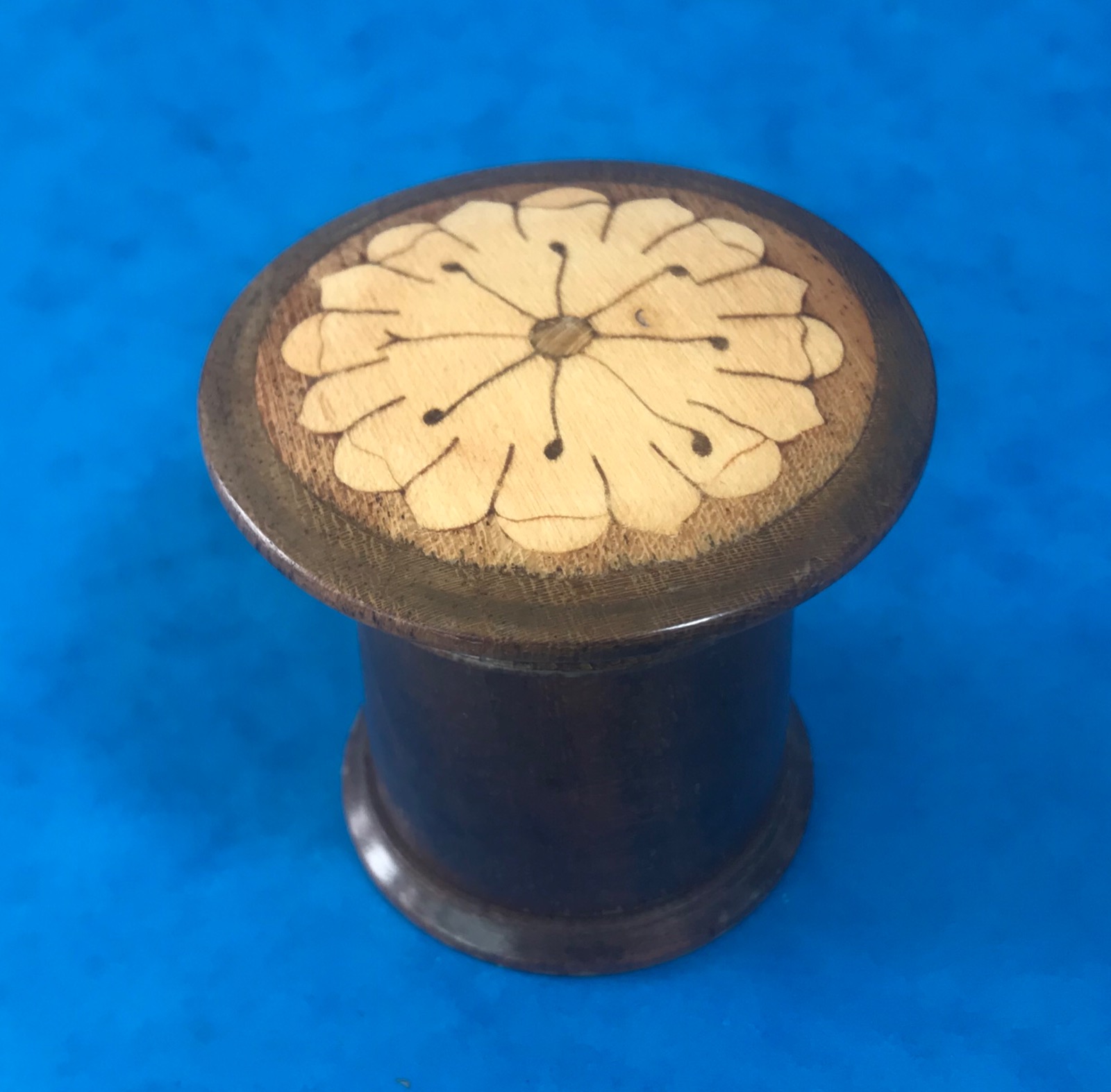 A Walnut Inlaid Arts and Crafts Nutmeg Grinder