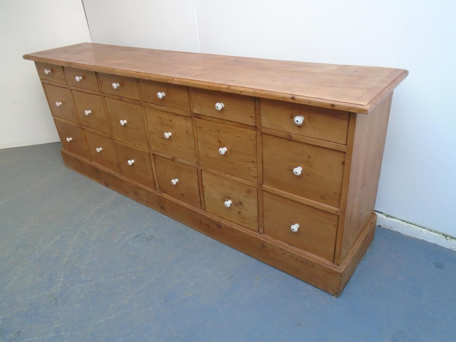 A Waxed 18 Drawer Victorian Antique / Old Pine Bank of Drawers /98 Inch TV Stand