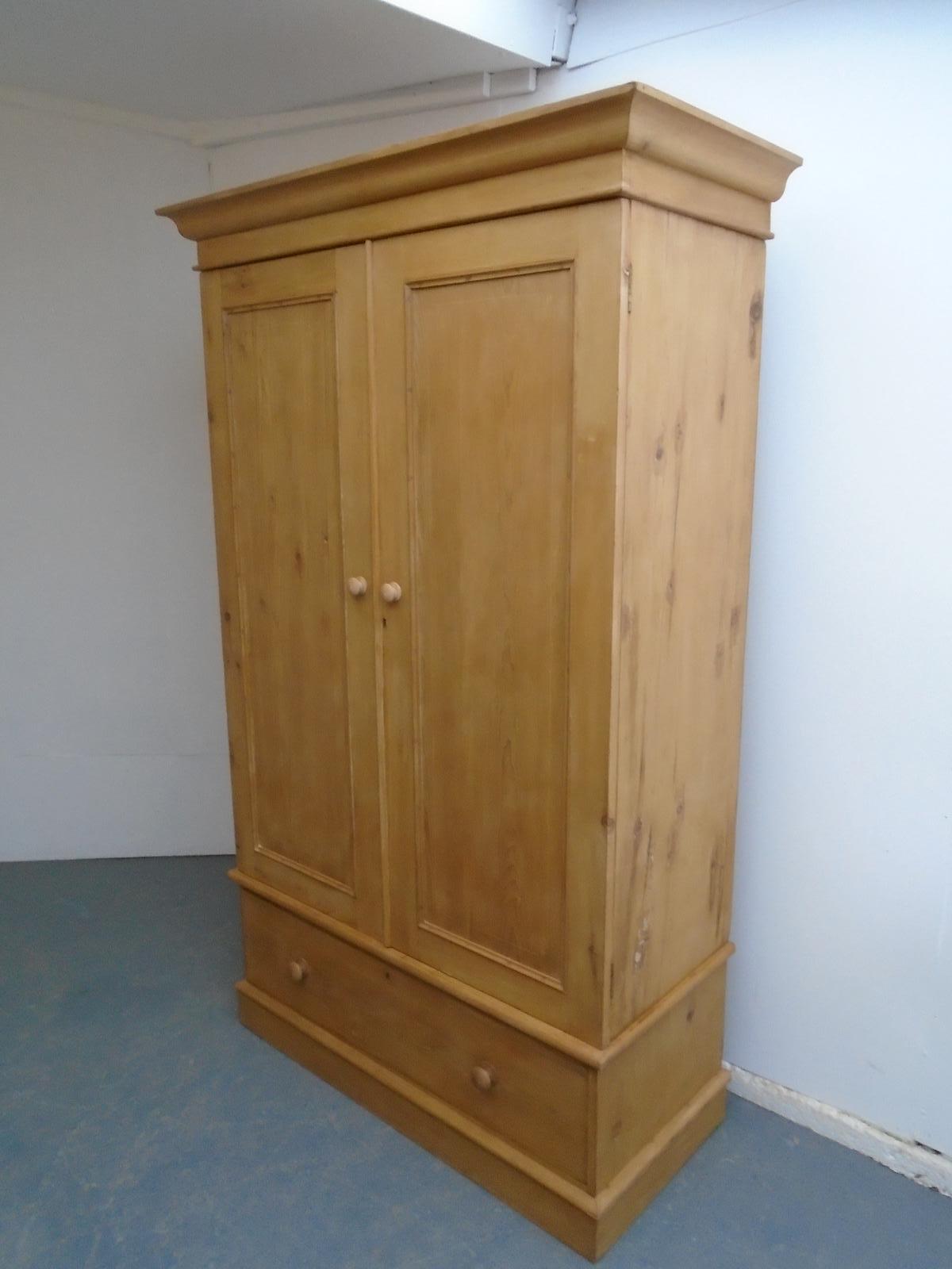 A Waxed Victorian Antique/Old Pine 1 Door 1 Drawer 3 Piece Wardrobe