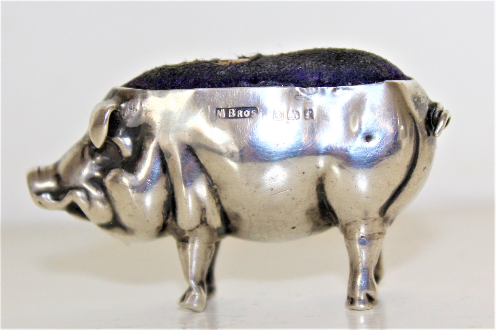 A Well Defined Hallmarked Silver Pig Pin Cushion circa 1905 Maker the Miller Brothers of Birmingham
