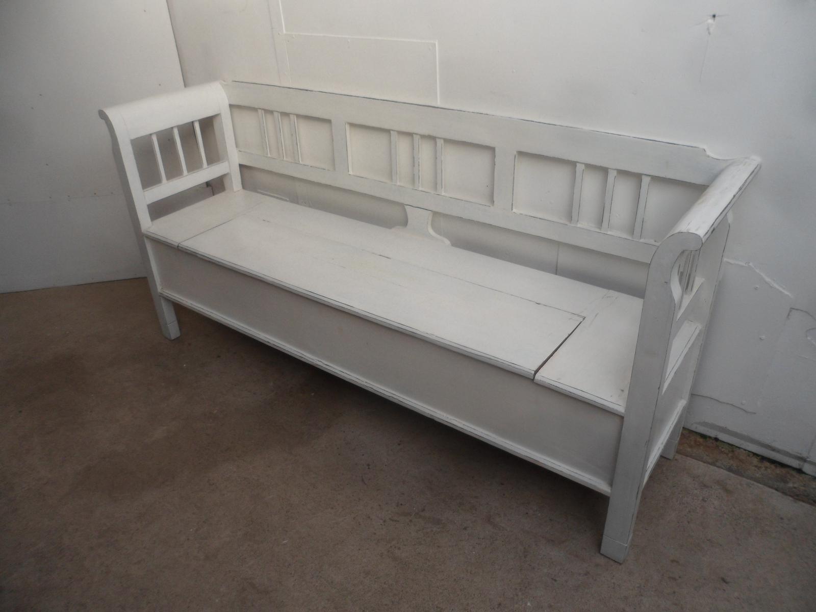 A White 3 Seater Antique/Old Pine Kitchen/Hall Box Settle/ Bench