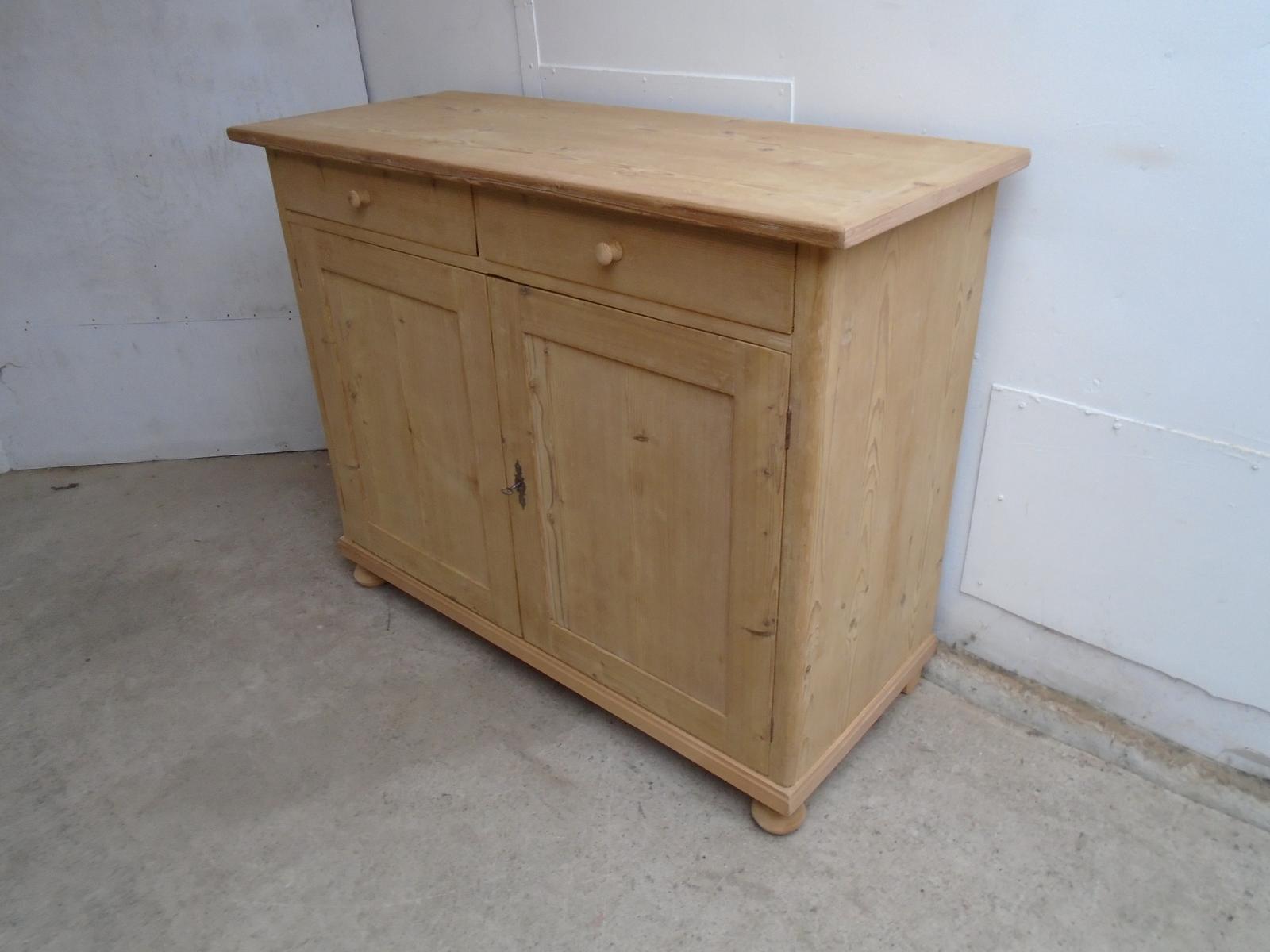 A Wide & Tall Victorian Antique Pine 2 Door Kitchen Dresser Base to Wax / Paint
